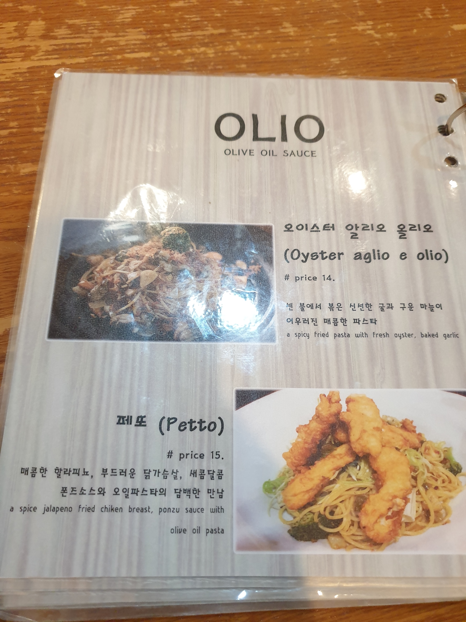 제가 주문한 오이스터 알리오 올리오 입니다.