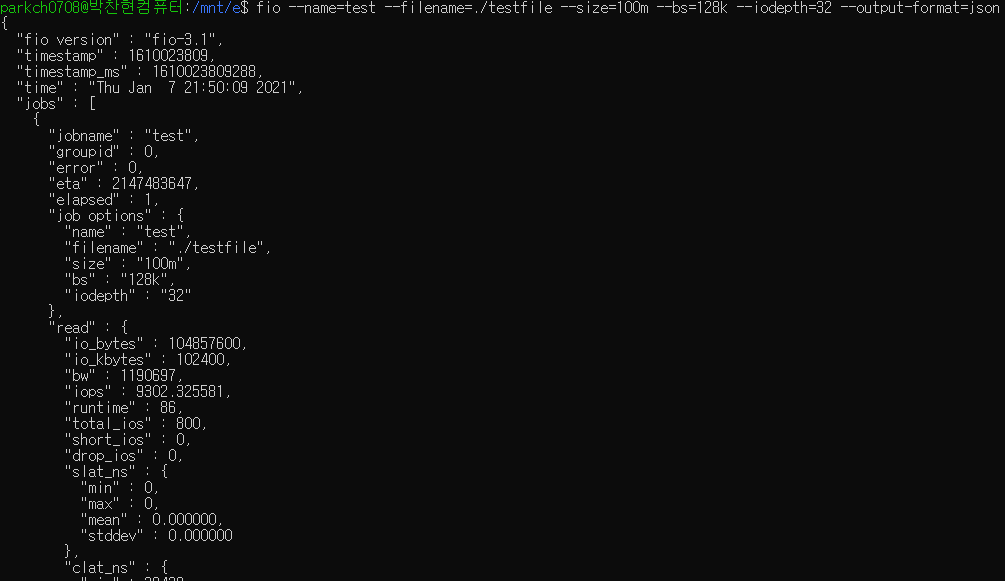 [스토리지] fio 결과 파일 포맷 : json, csv, normal (fio output-format, minimal)