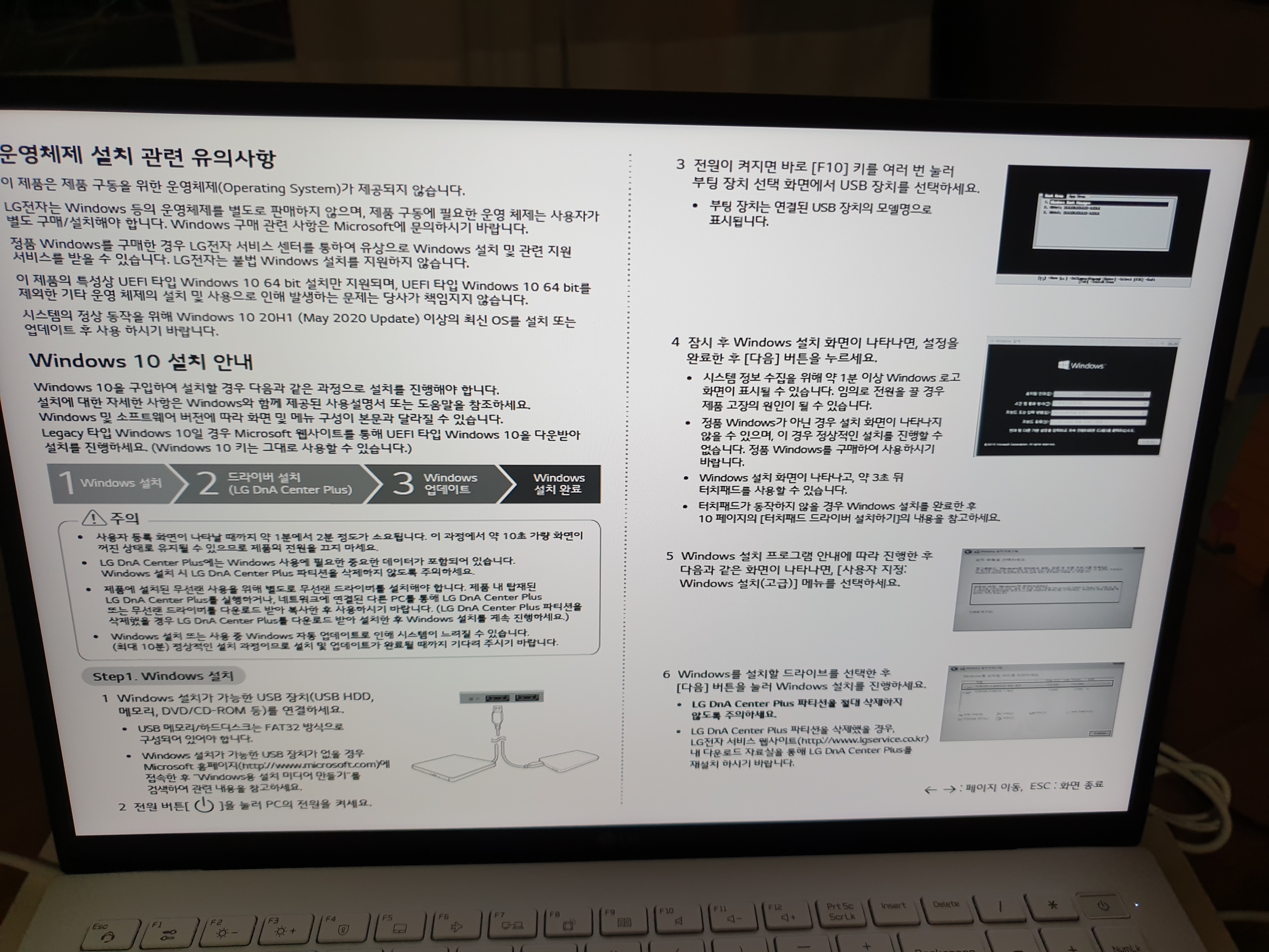 노트북을 켜니 OS 설치 매뉴얼이 뜨네요. (신기합니다...)
