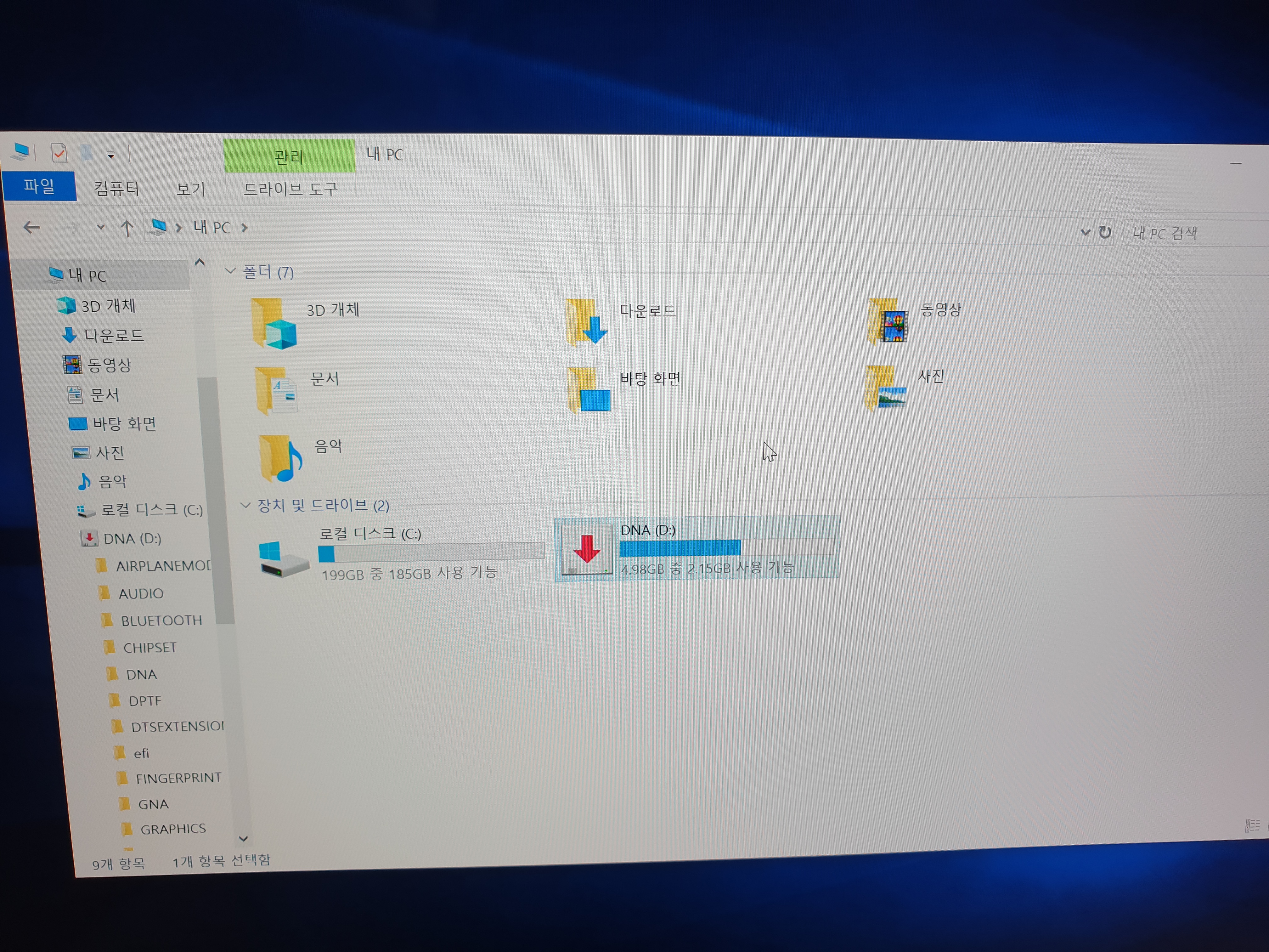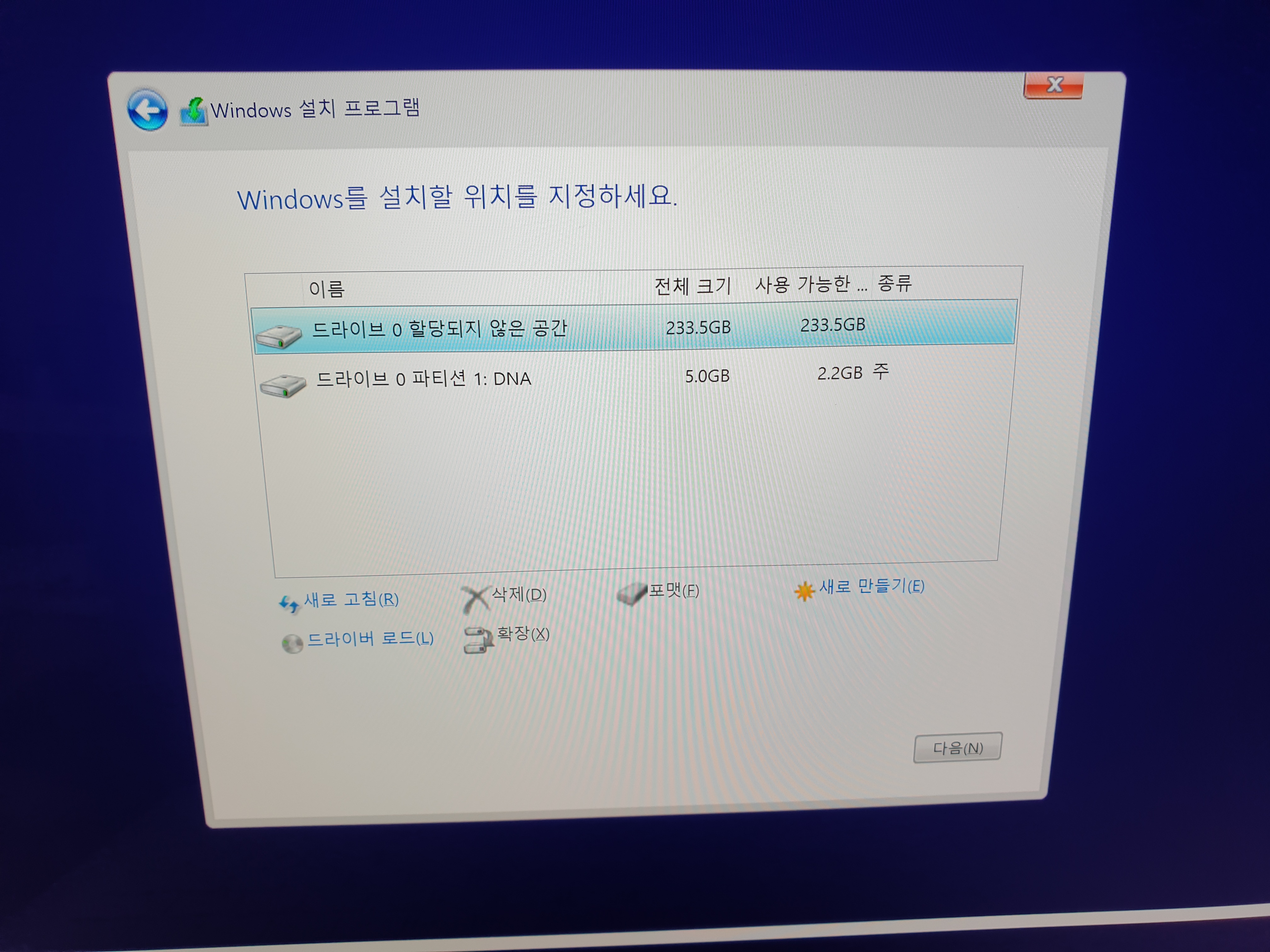윈도우 설치를 하려고 보니 DNA 라는 파티션이 있네요.