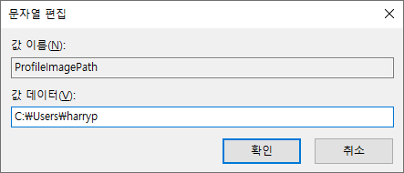 으로 레지스트리 편집을 실행 후 다음 경로에 입력되어 있는 홈 디렉토리 경로를 변경 해줍니다.