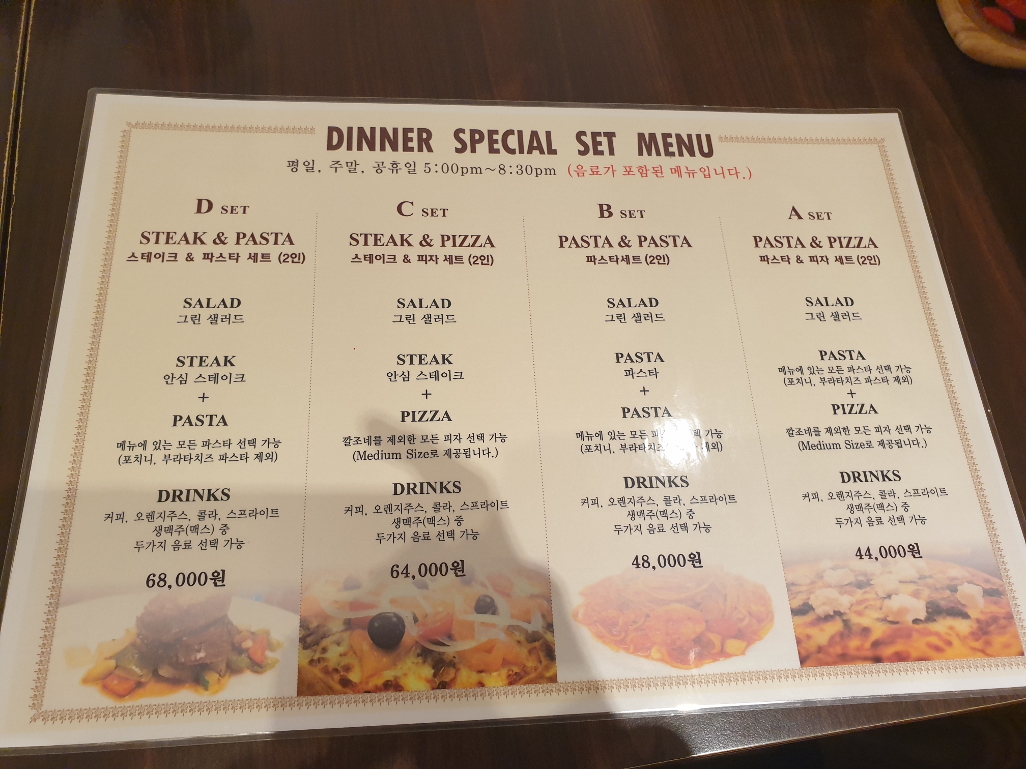 피자, 파스타 등 메뉴가 다양하게 많네요.