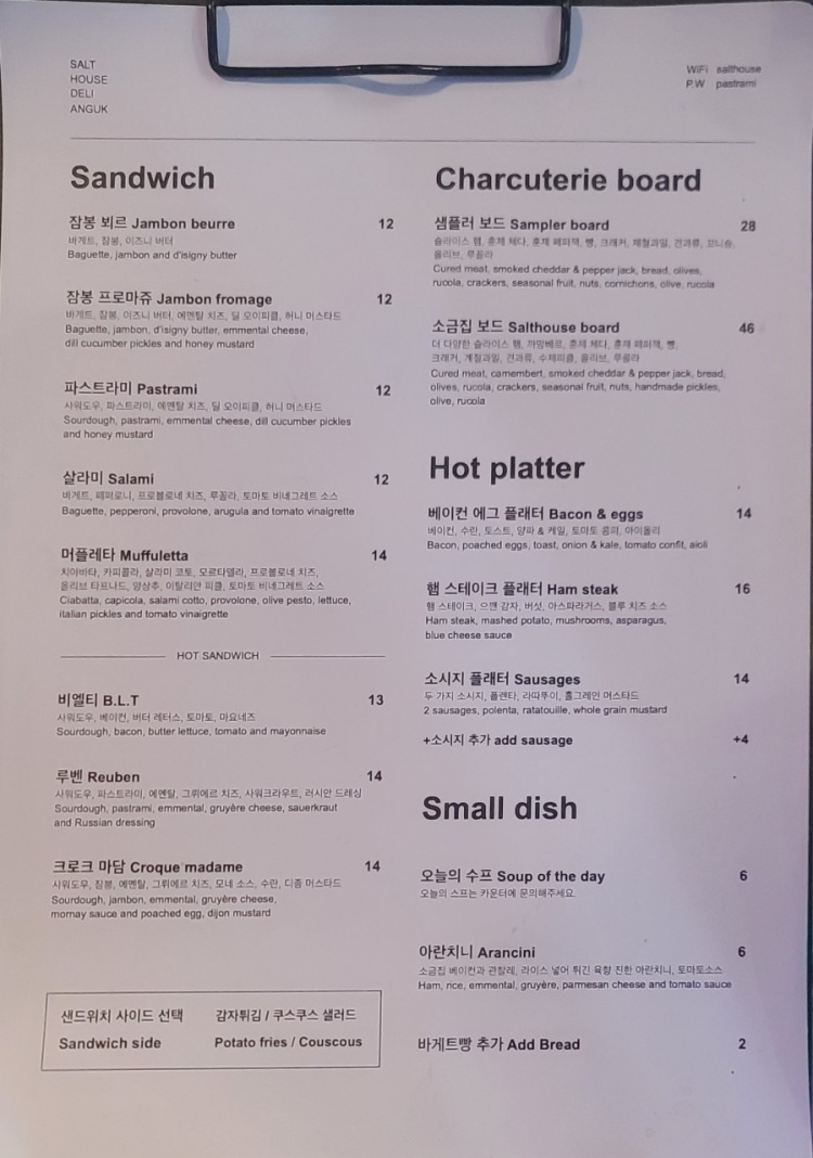 잠봉뵈르 샌드위치로 제일 유명하다는 안국의 '소금집 델리'에 다녀왔습니다.