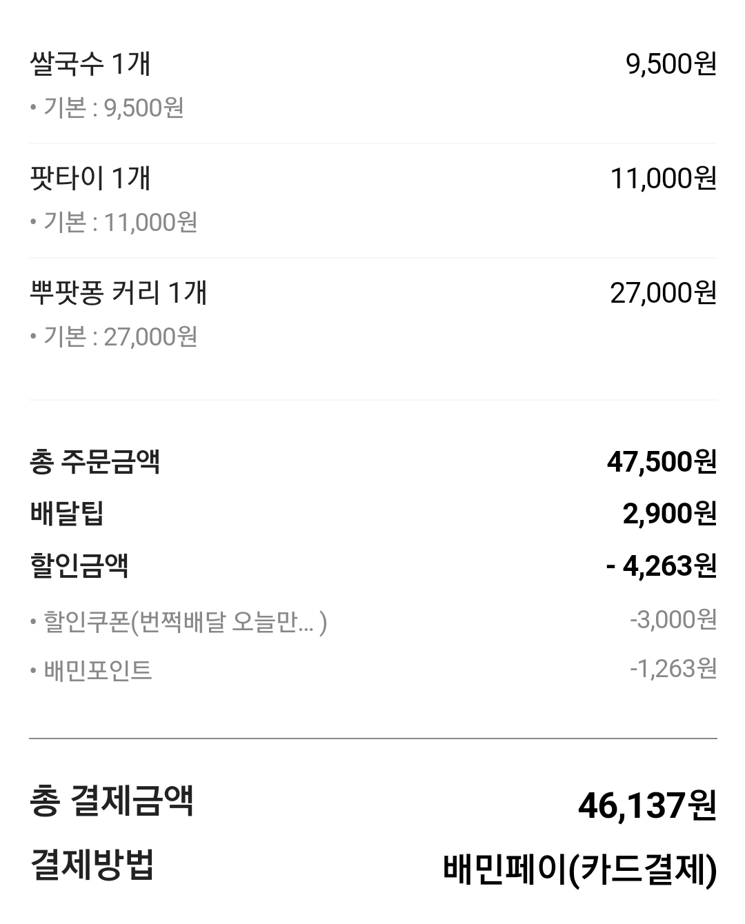 다음번엔 좀 더 여러 종류의 메뉴를 시켜봐야 될 것 같아요!
