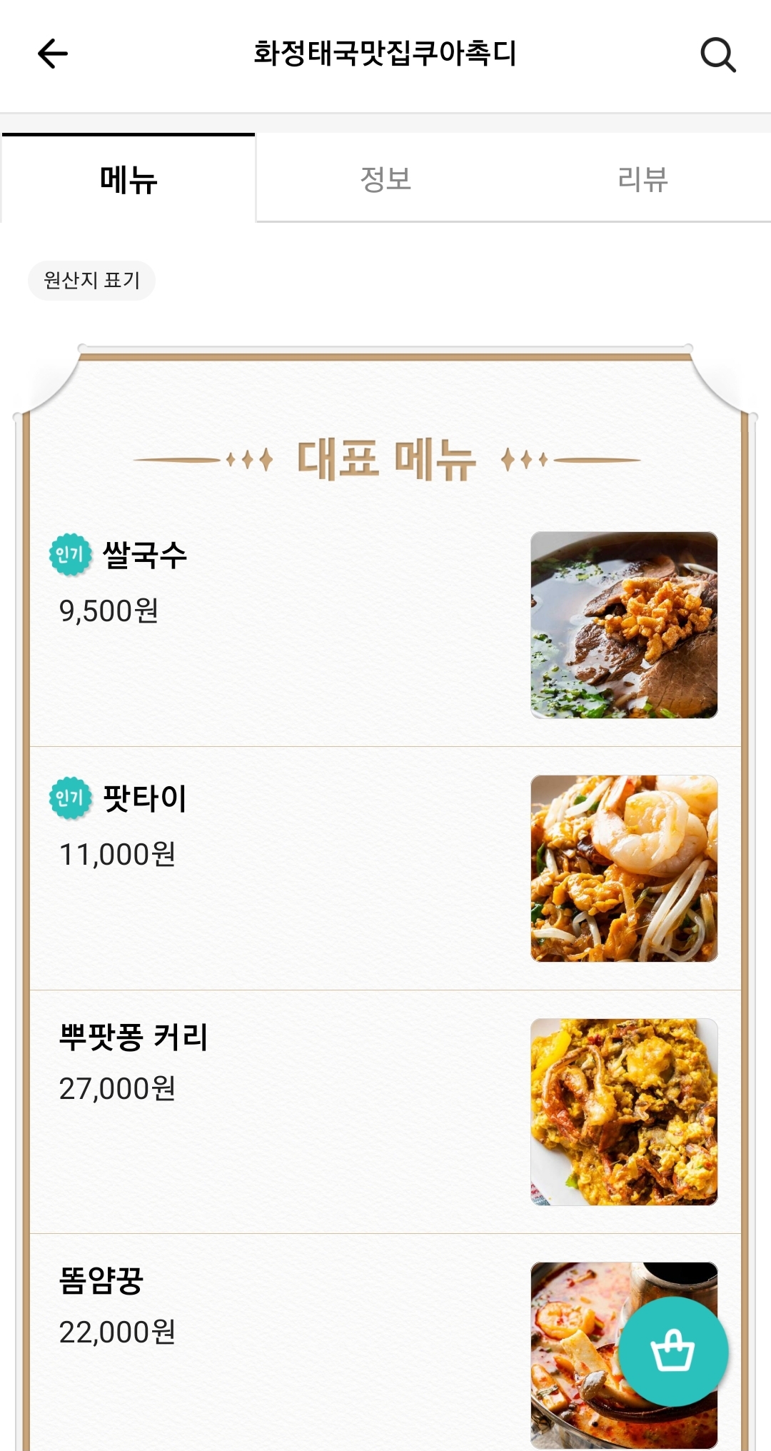 화정태국맛집쿠아촉디