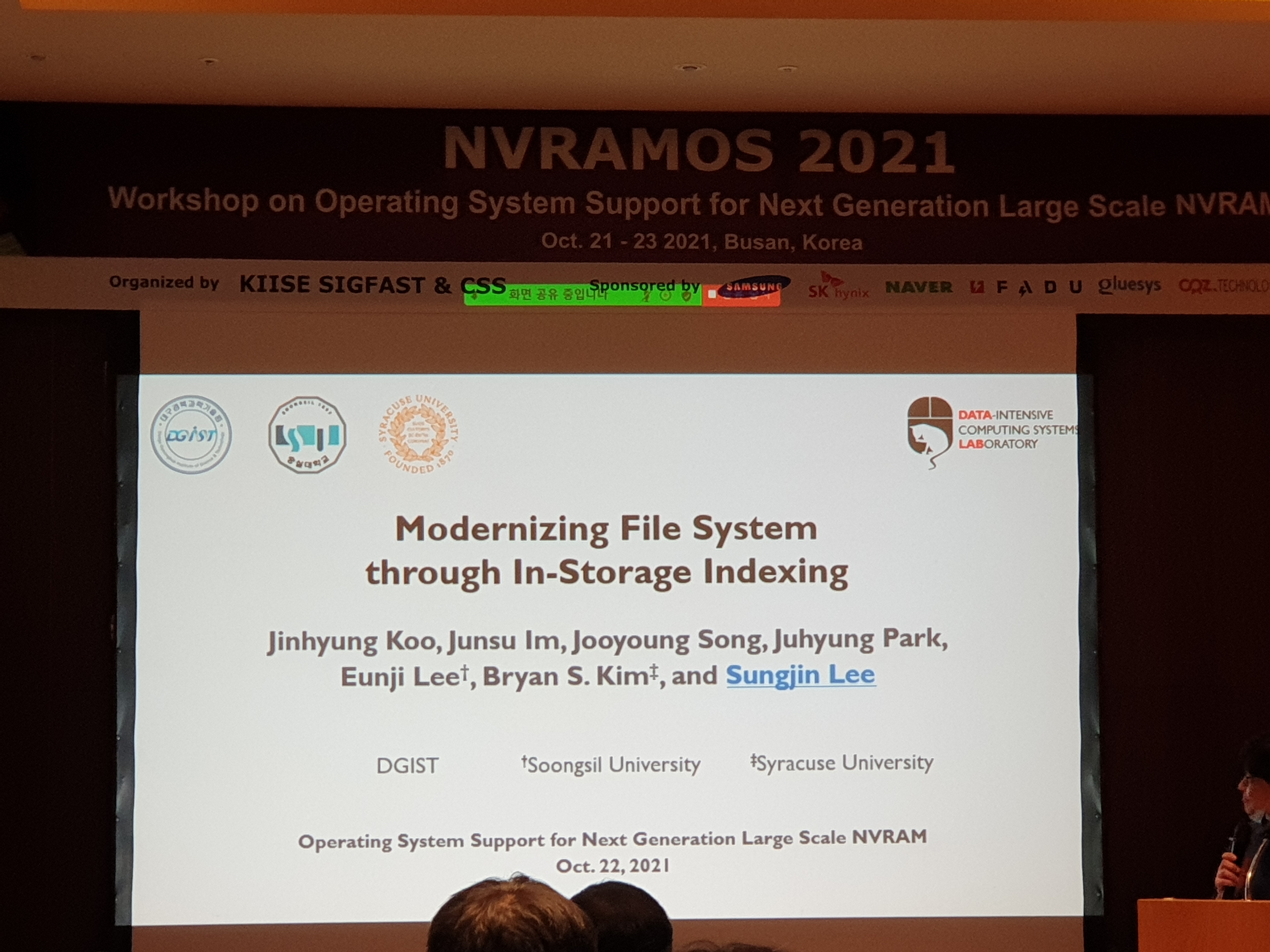 회사에서 후원하는 스토리지 시스템 워크샵인 NVRAMOS (Workshop on Operating System Support for Next Generation Large Scale NVRAM) 2021에 참여 하게 되었습니다.