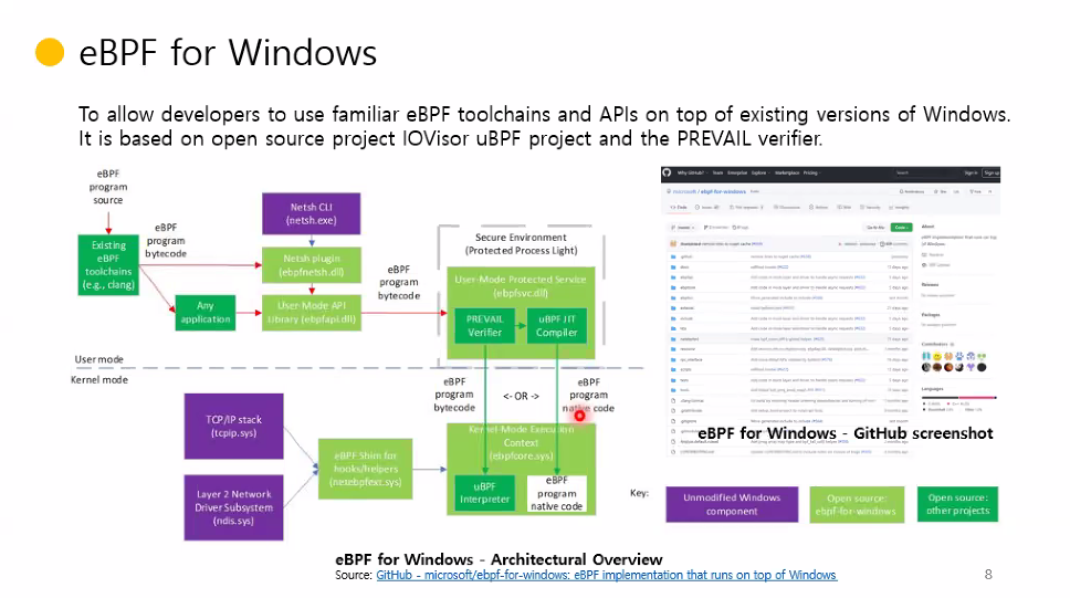 MS에서 윈도우에 eBPF를 사용을 시작으로 오픈소스에 대한 지원을 늘리려는 것 같다 합니다.