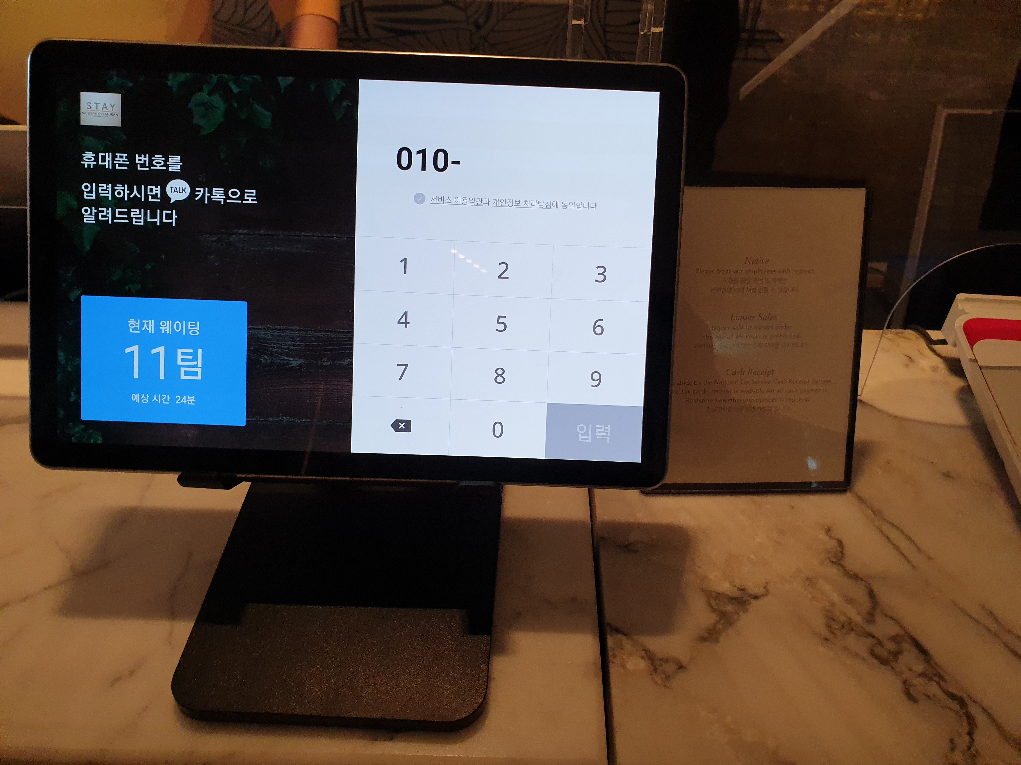 웨이팅 시스템은 핸드폰 번호 입력해놓으면 카톡으로 알림이 오더라구요.