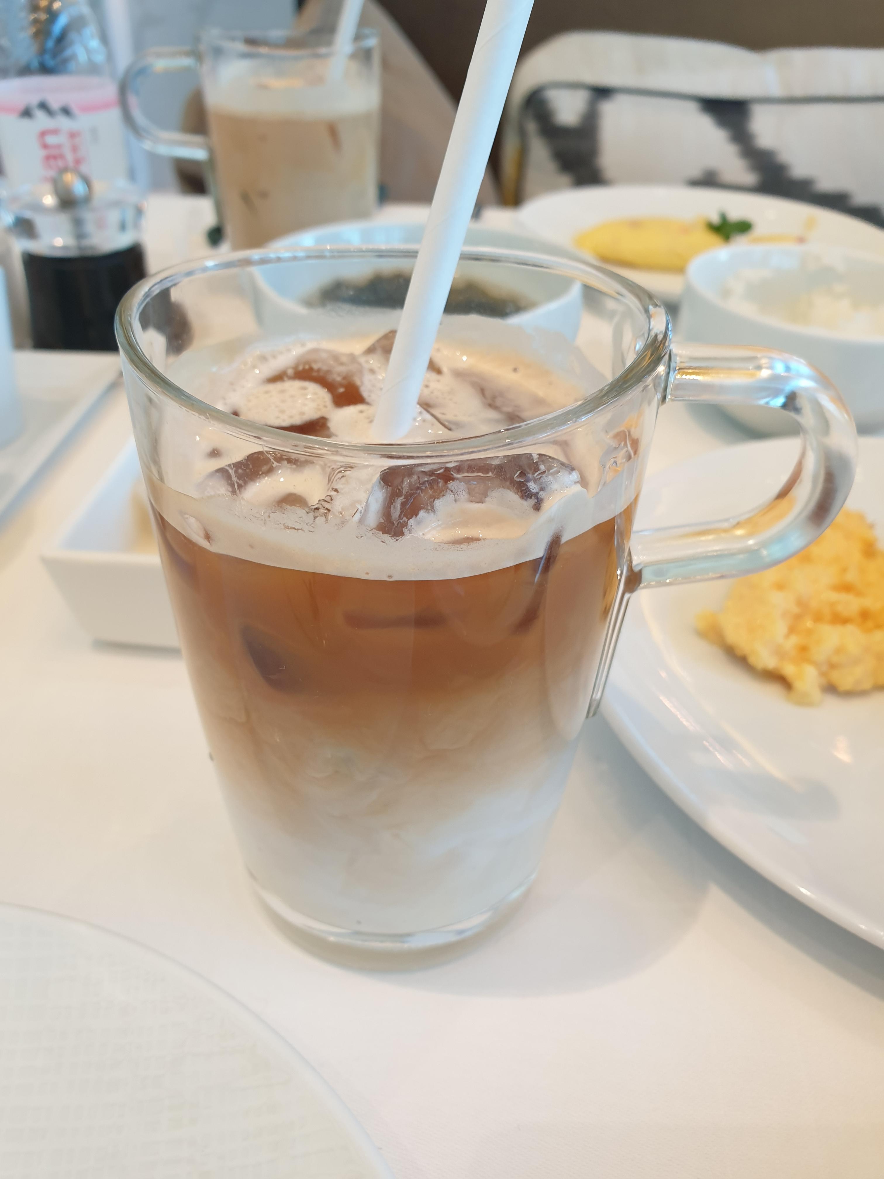 저는 써니사이드업과 아이스 카페라떼를 주문 했어요.