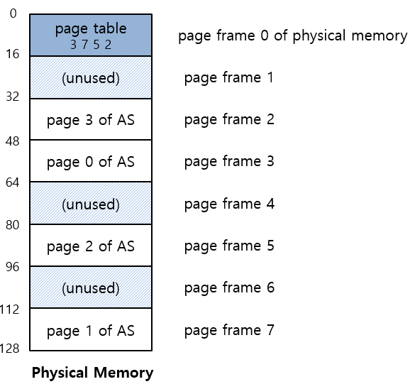 - 페이지 테이블 : 주소 공간의 각 가상 페이지에 대한 물리 메모리 위치를 기록 -> 주소 변환