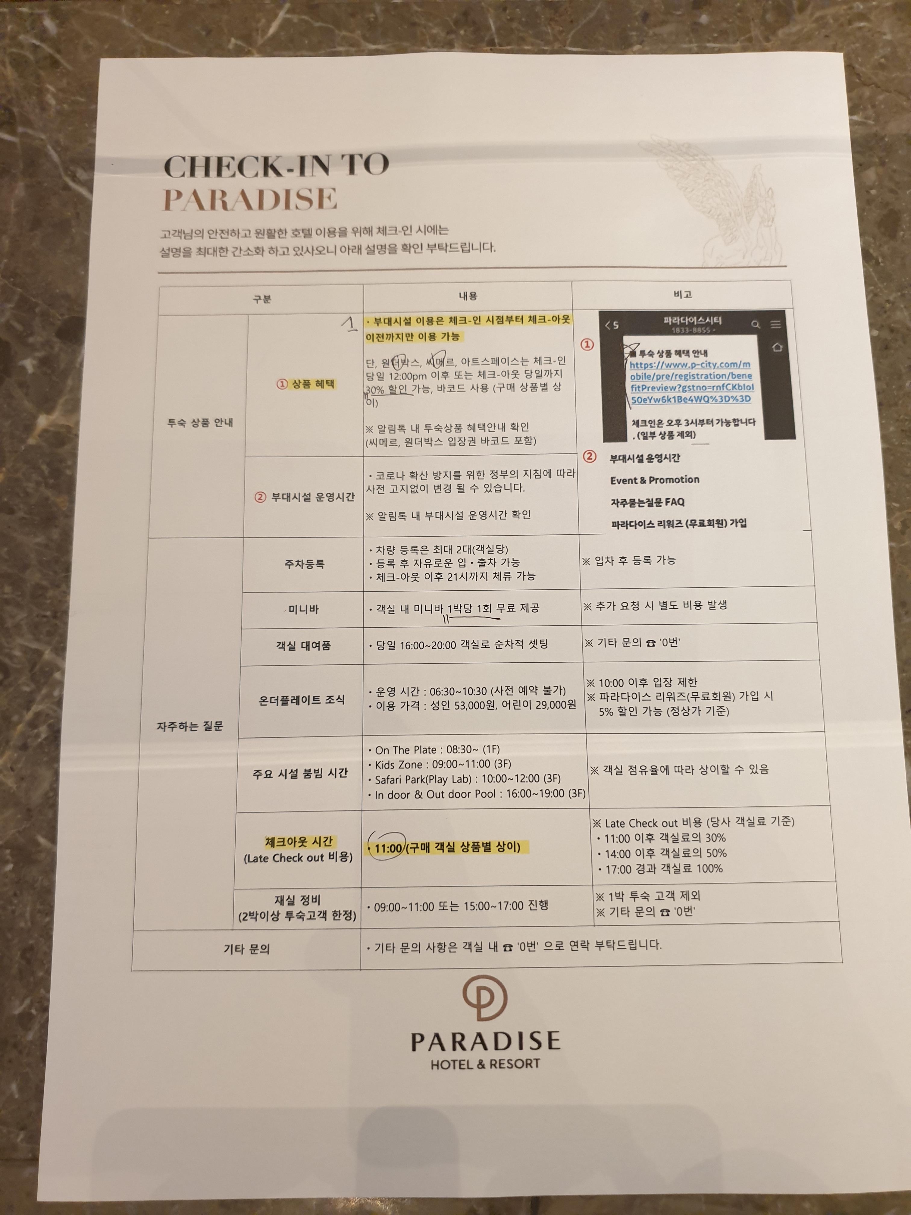 체크인을 하며 받은 기본 안내사항 이니 참고하셔도 좋을 것 같습니다.