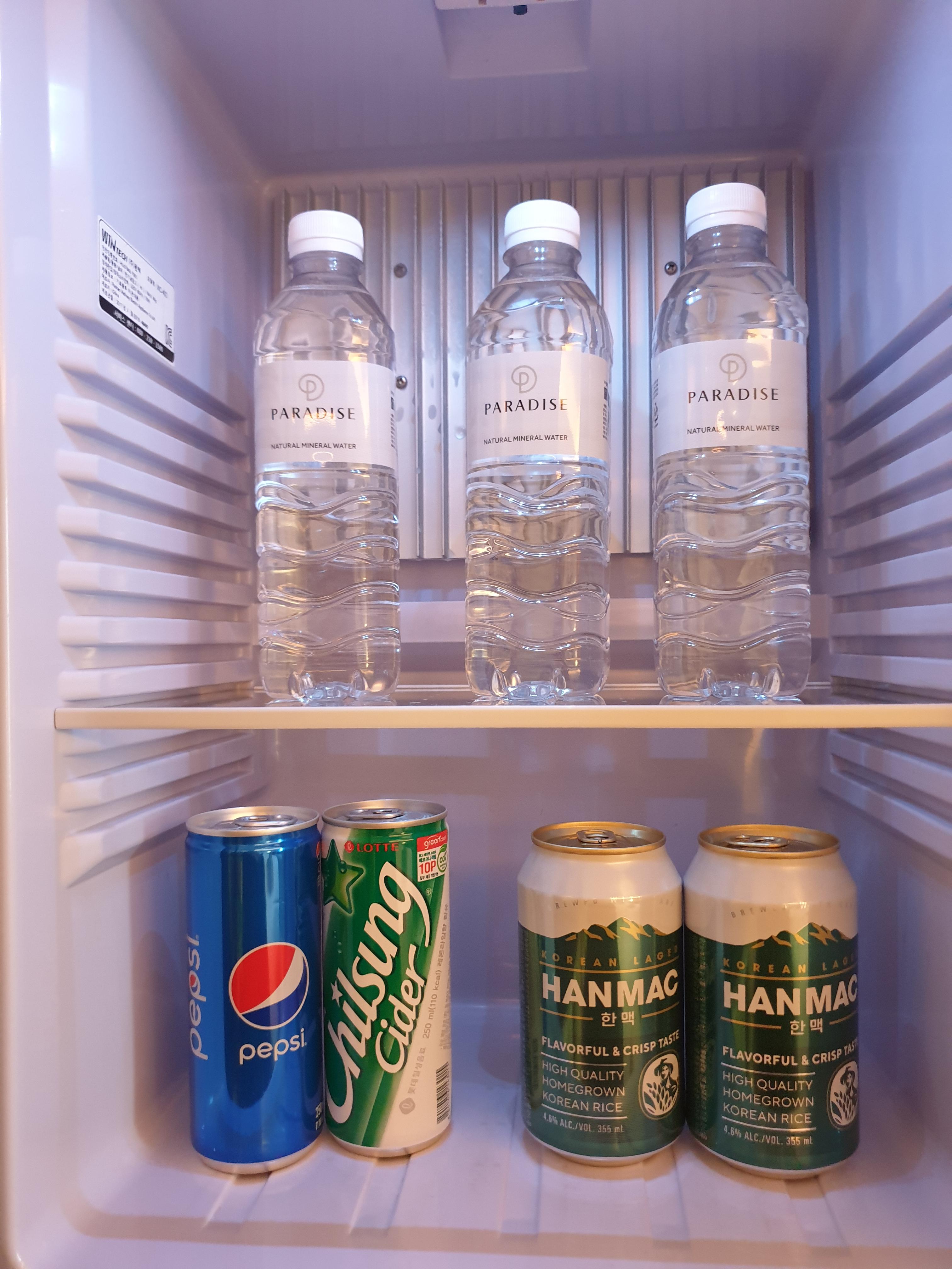 물 외에 콜라/사이다/맥주가 비치되어 있습니다.