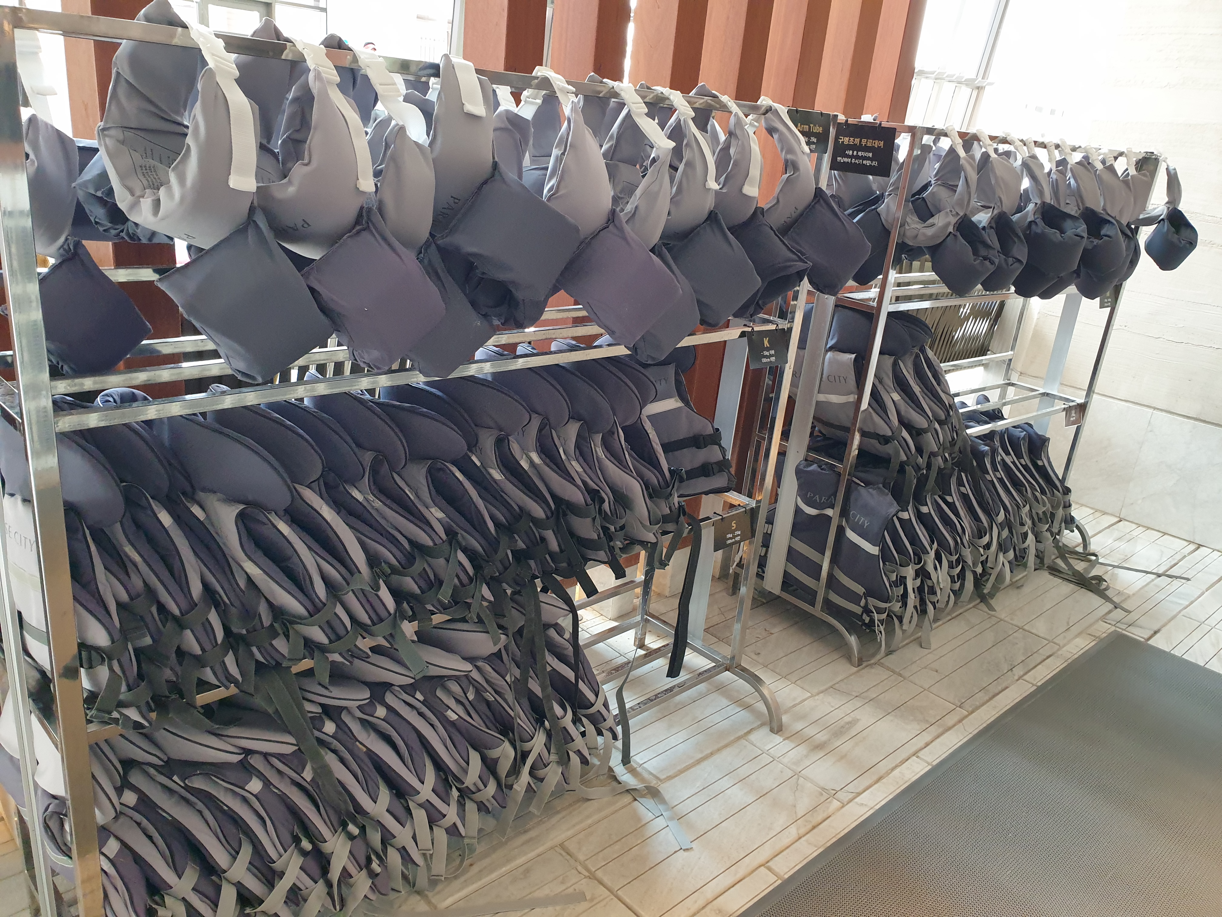 호텔에서 구명조끼와 암링은 많이 봤는데,