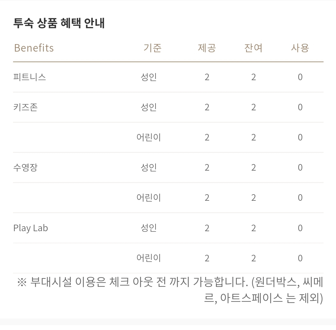 투숙 기간 중 내부 시설 이용에 횟수 제한이 있습니다.