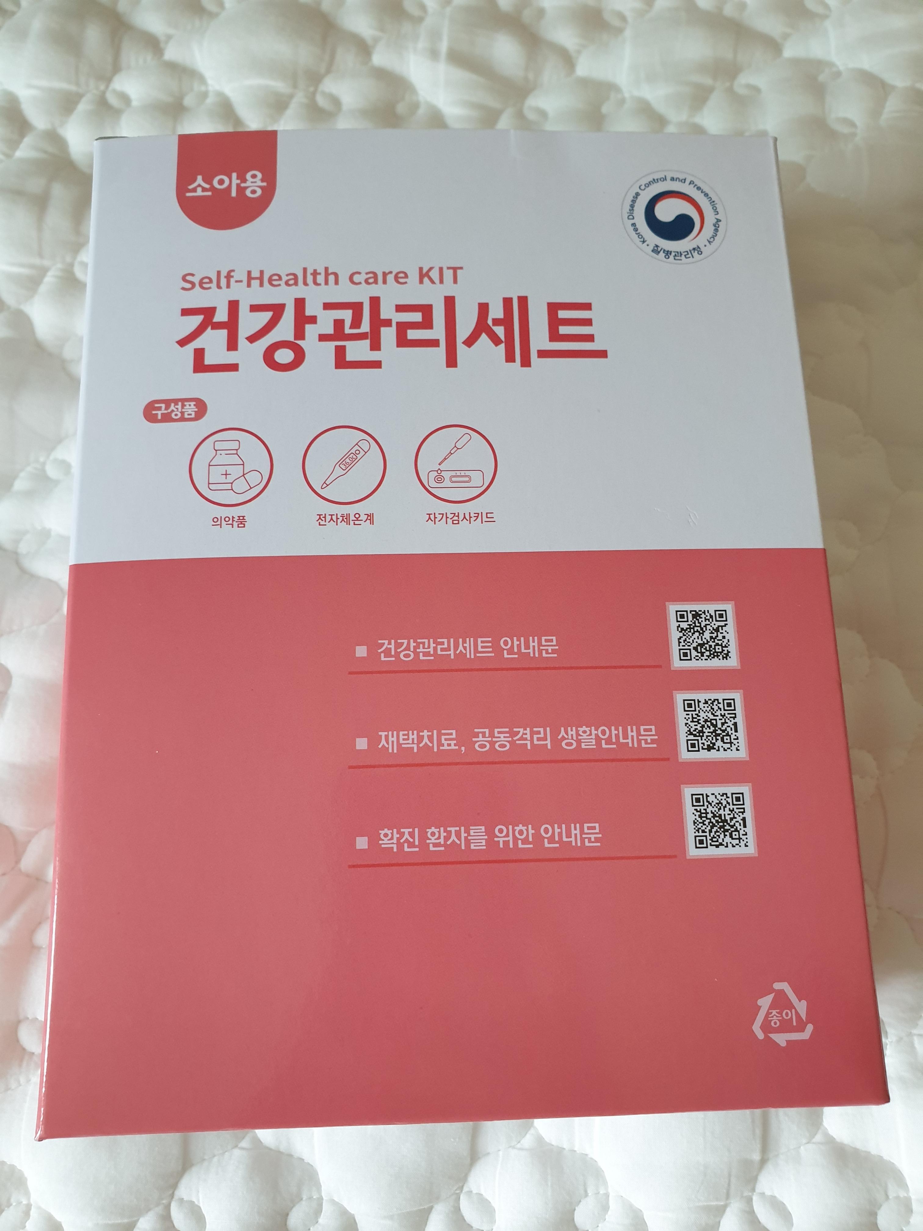 체온계와 일반 감기약 (콜대원 상비약), 검진 키트가 들어있었어요.