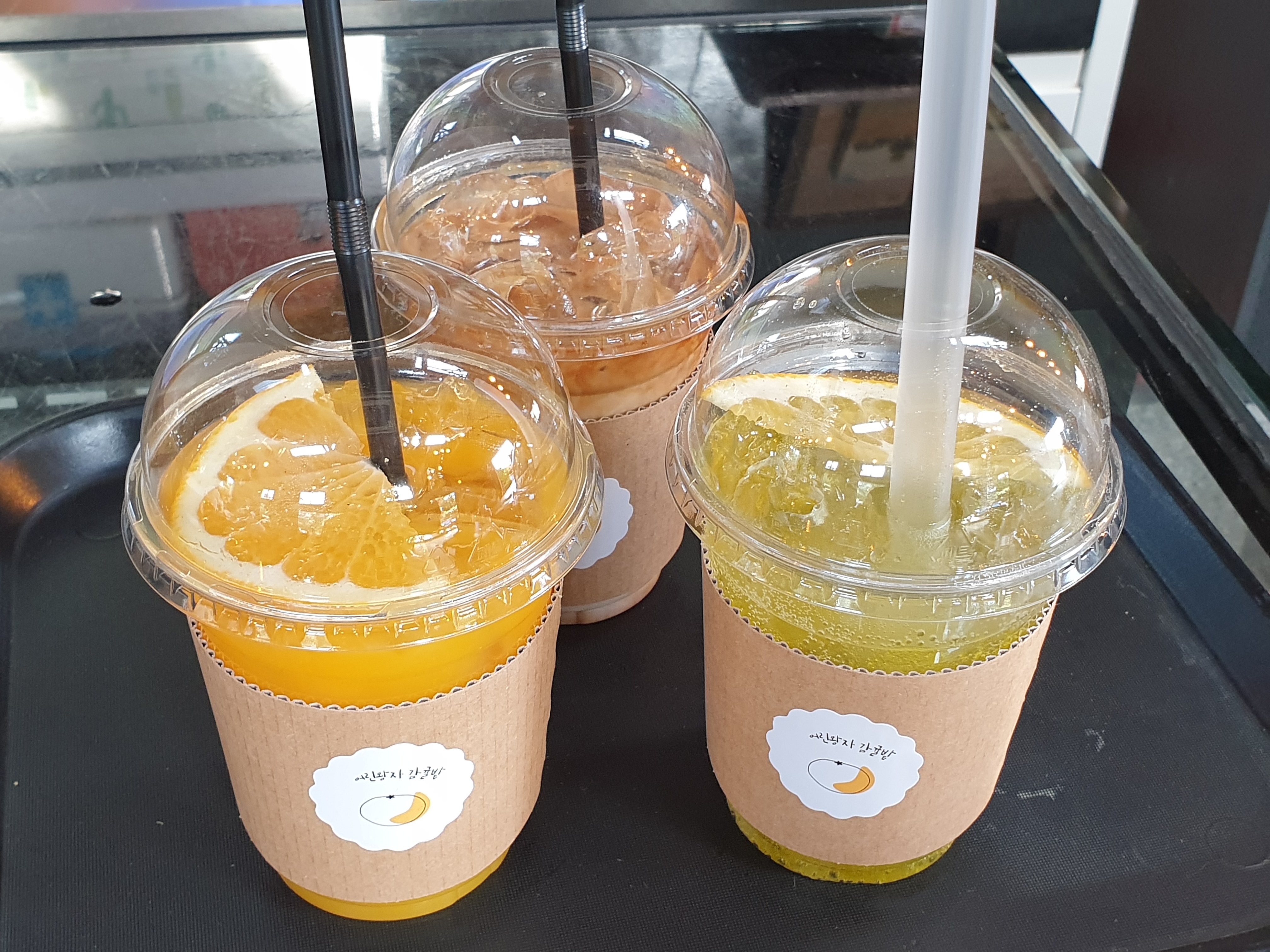 그래도 감귤 카페이니 커피보단 귤 음료들로 주문해봤어요.