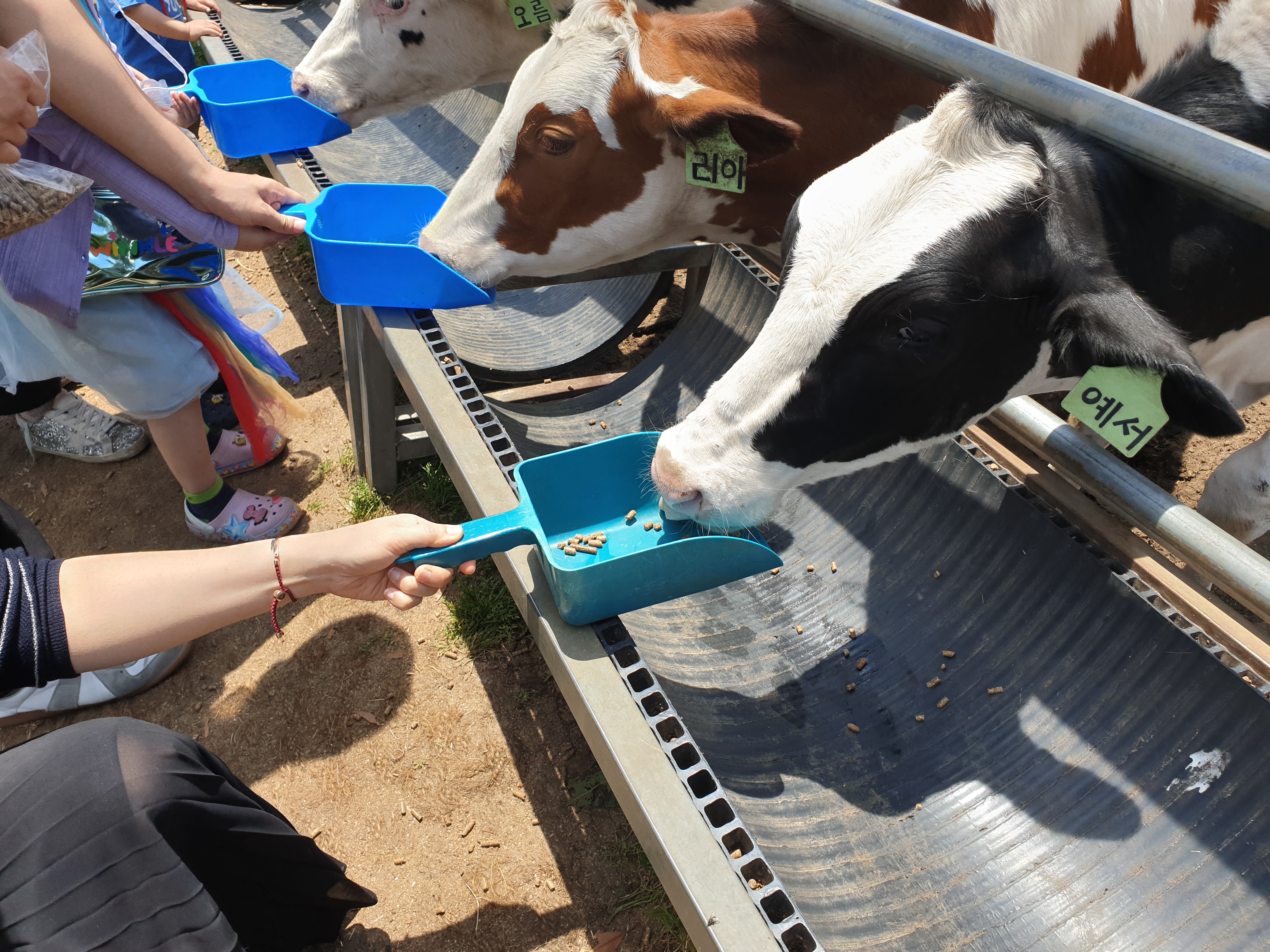 젖소 먹이 주기 체험과 송아지 우유 주기 체험도 하고 왔어요.