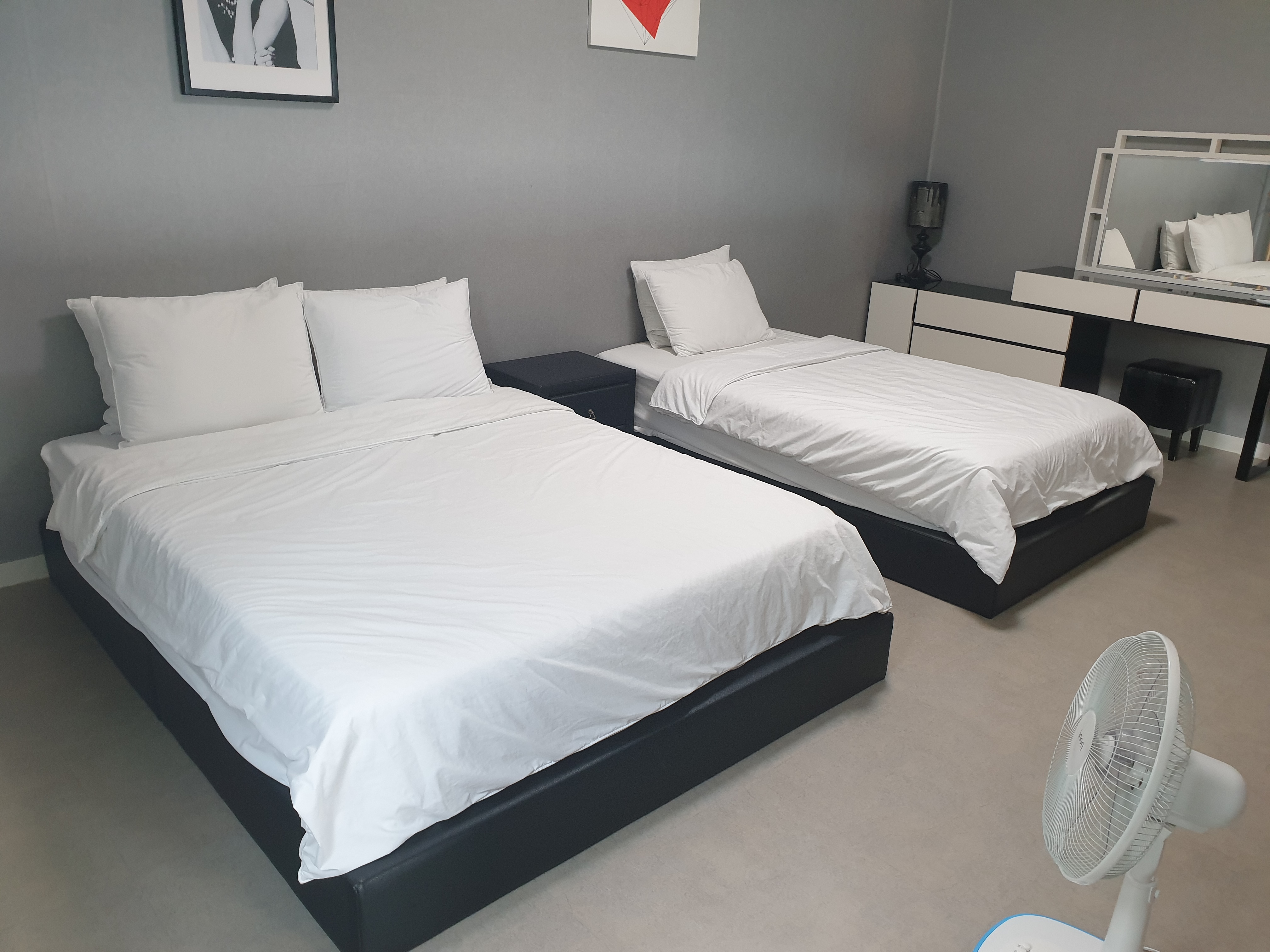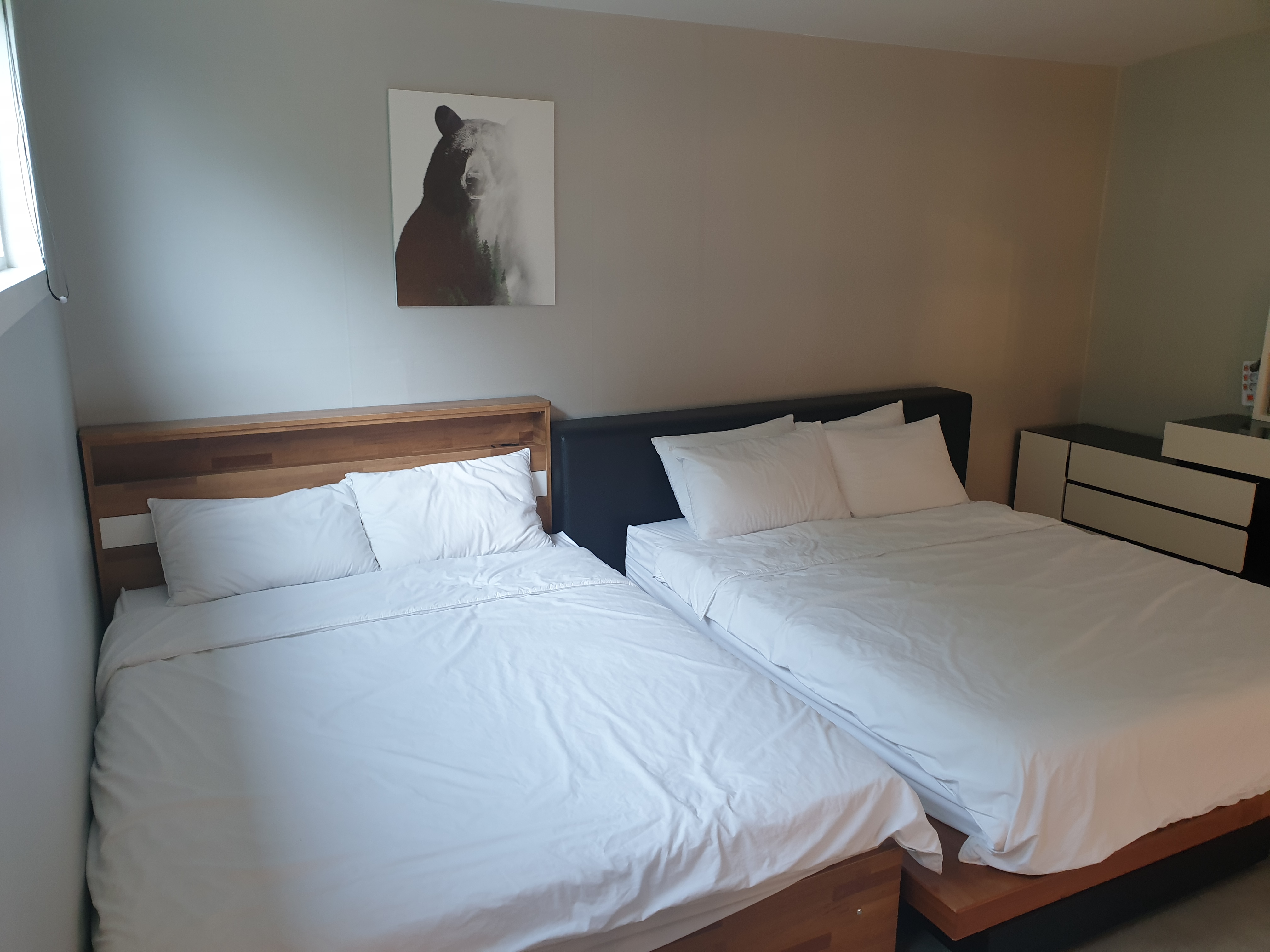 104동은 1층에 더블베드 하나가 있는 방이 있구요,