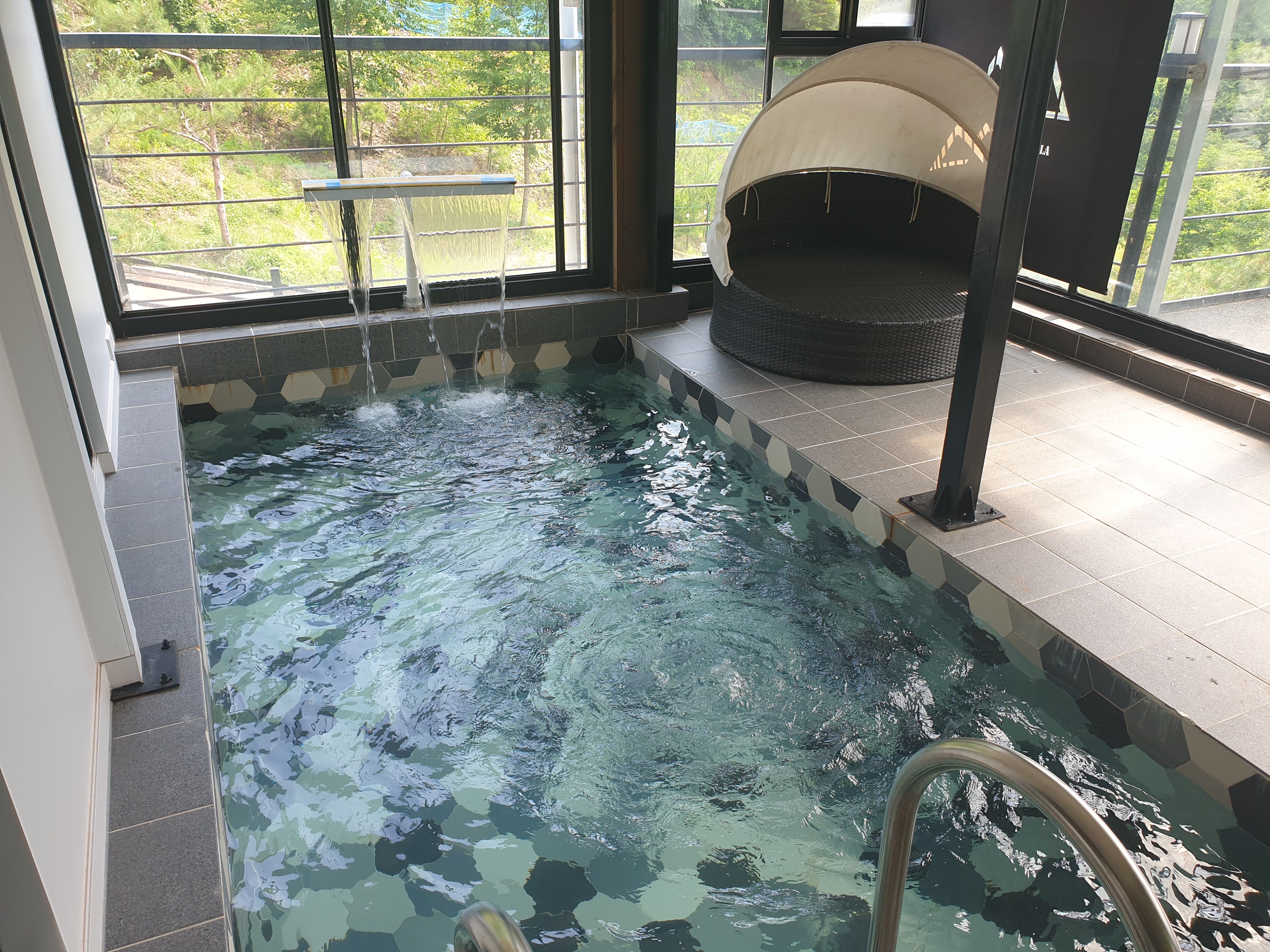 이렇게 꽤 넓고 깊은 자쿠지에서 추운 몸도 녹일 수 있습니다.