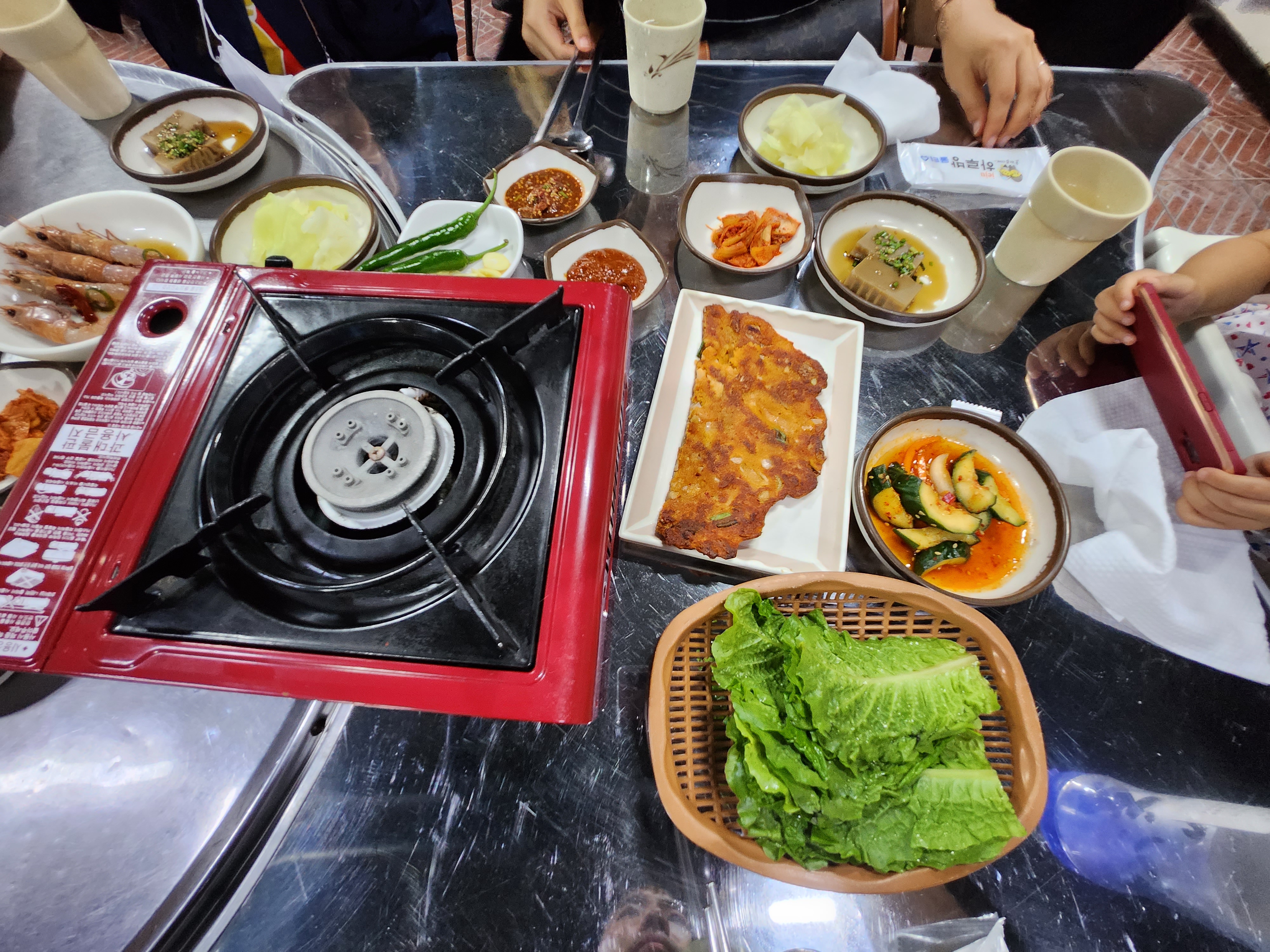 이런데서 불판위에 고기를 구워먹는게 조금 생소하긴 해지만...