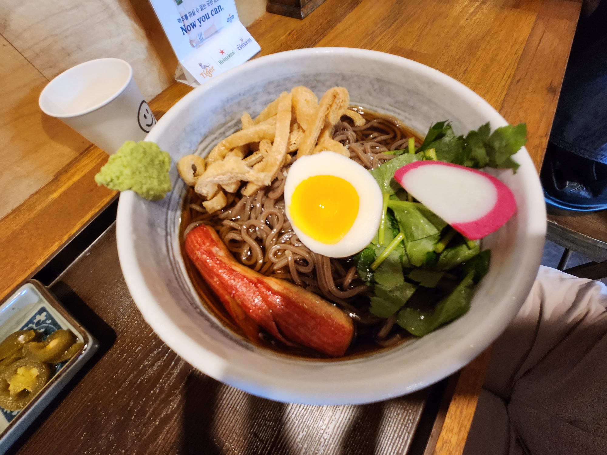할머니와 아이가 따뜻한 우동을 먹고싶다 하여 냉우동, 온우동, 냉모밀을 시켰는데요.