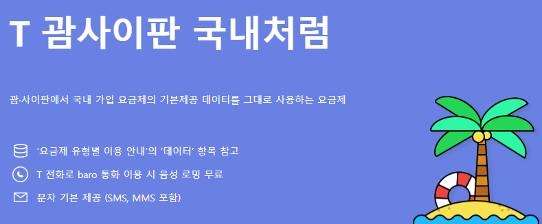 SK텔레콤 상품서비스 T 괌사이판 국내처럼