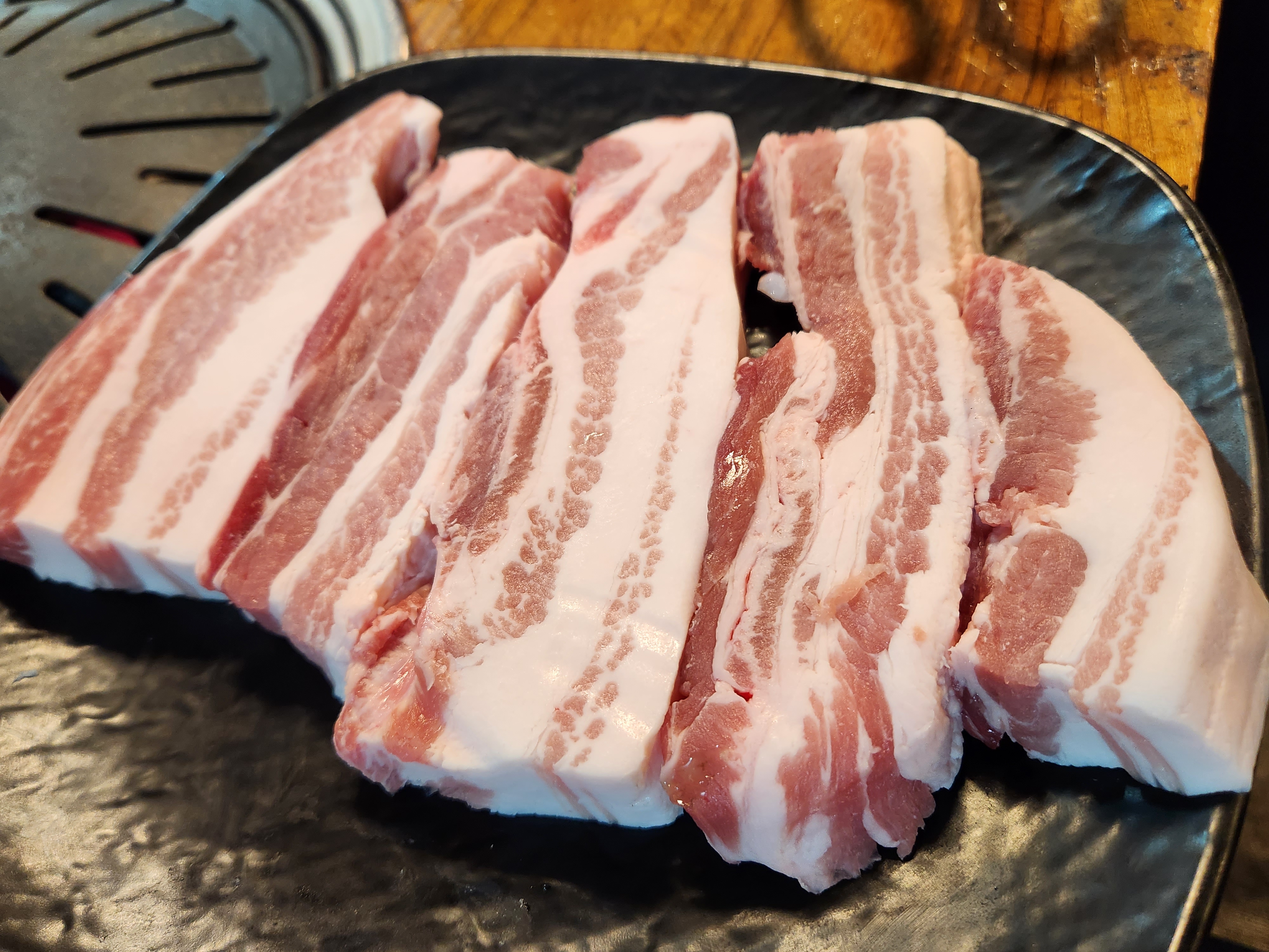 삼겹살 한판과 등심 반판을 시켰습니다.