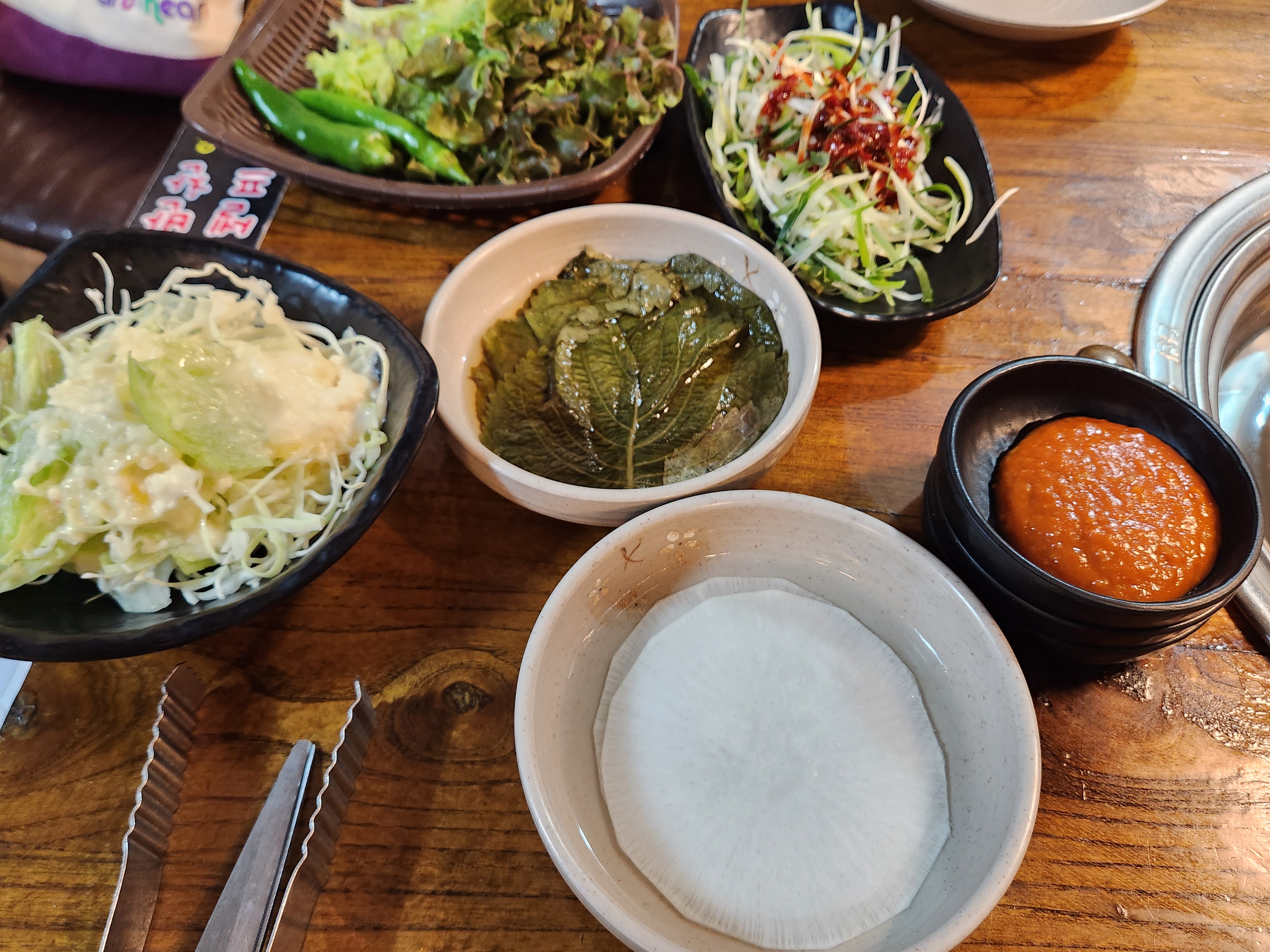 고깃집에서 필요한 반찬은 다 있습니다.