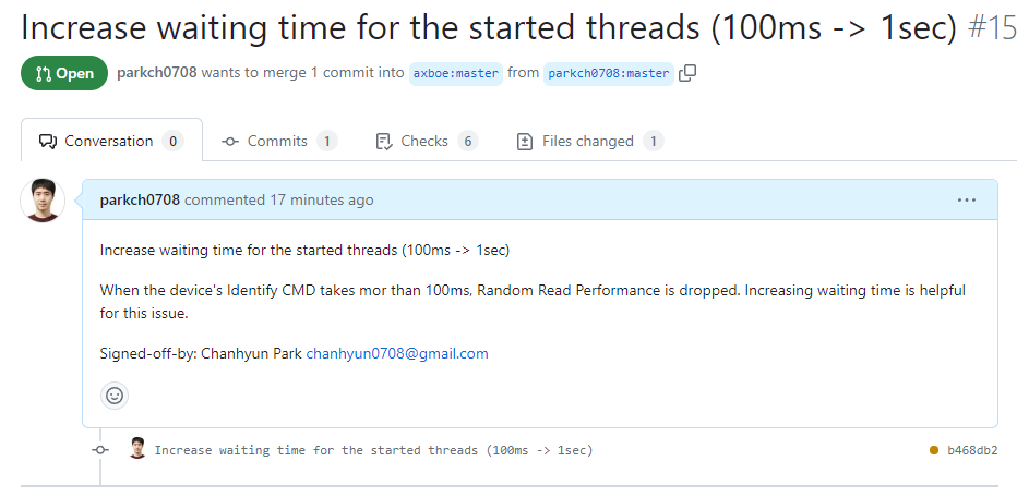 오픈소스 스토리지 성능 평가 툴인 fio에 수정해야 될 부분을 찾게 되어 처음으로 pull request를 해봤습니다.