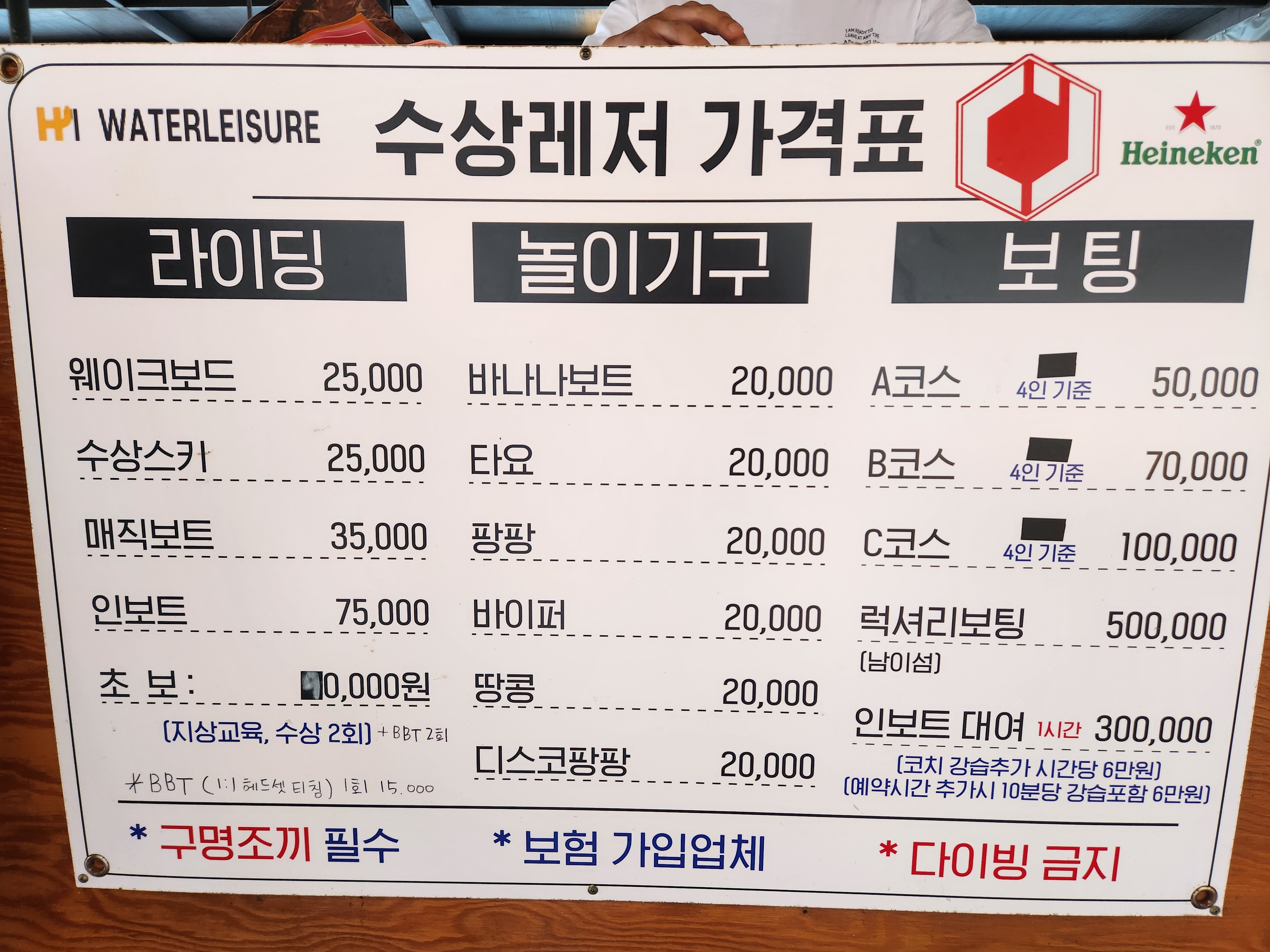 보니까 숙박에 웨이크보드, 바나나보트 같은것도 탈 수 있더라구요.