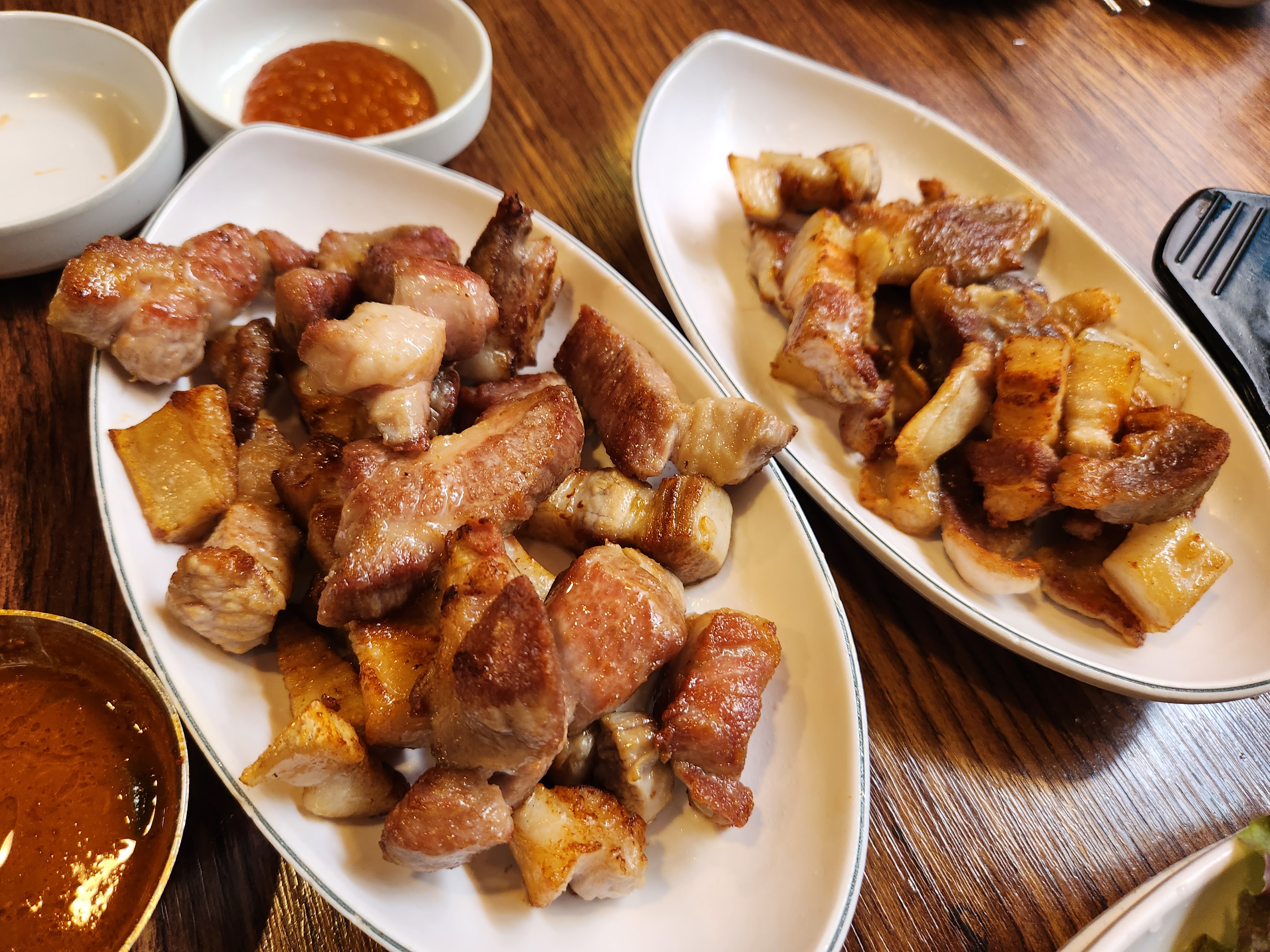 특히 지방부분 있는데는 얇게해서 바싹 구워주셔서 아주 맛있게 먹었어요.
