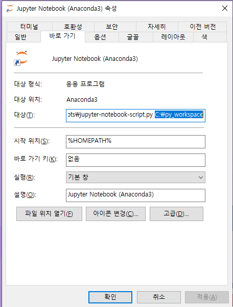 바로가기에서 설정 된 홈 디렉토리가 디폴트로 뜨게 됩니다.