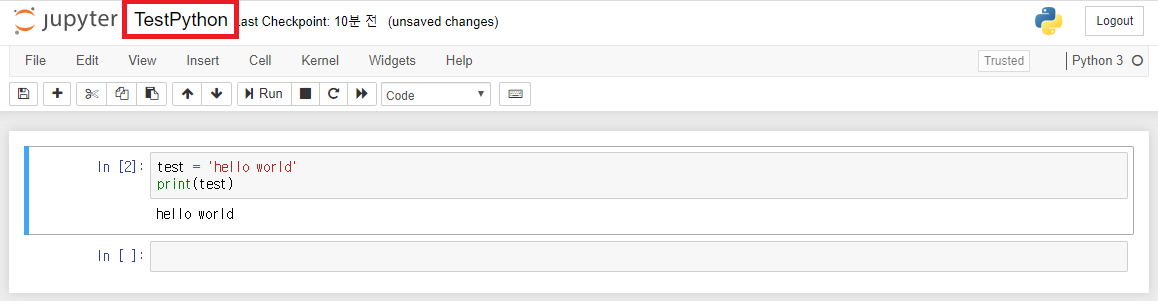 - Shift + Enter : 현재 Cell이 실행 되며 실행 커서가 다음 Cell로 넘어 간다.