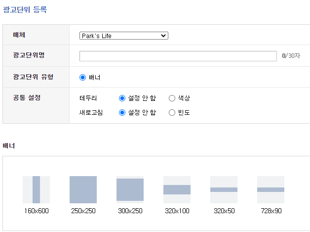 '광고단위 등록' 을 클릭 하게 되면 제일 첫 광고 단위를 등록 할 수 있습니다.