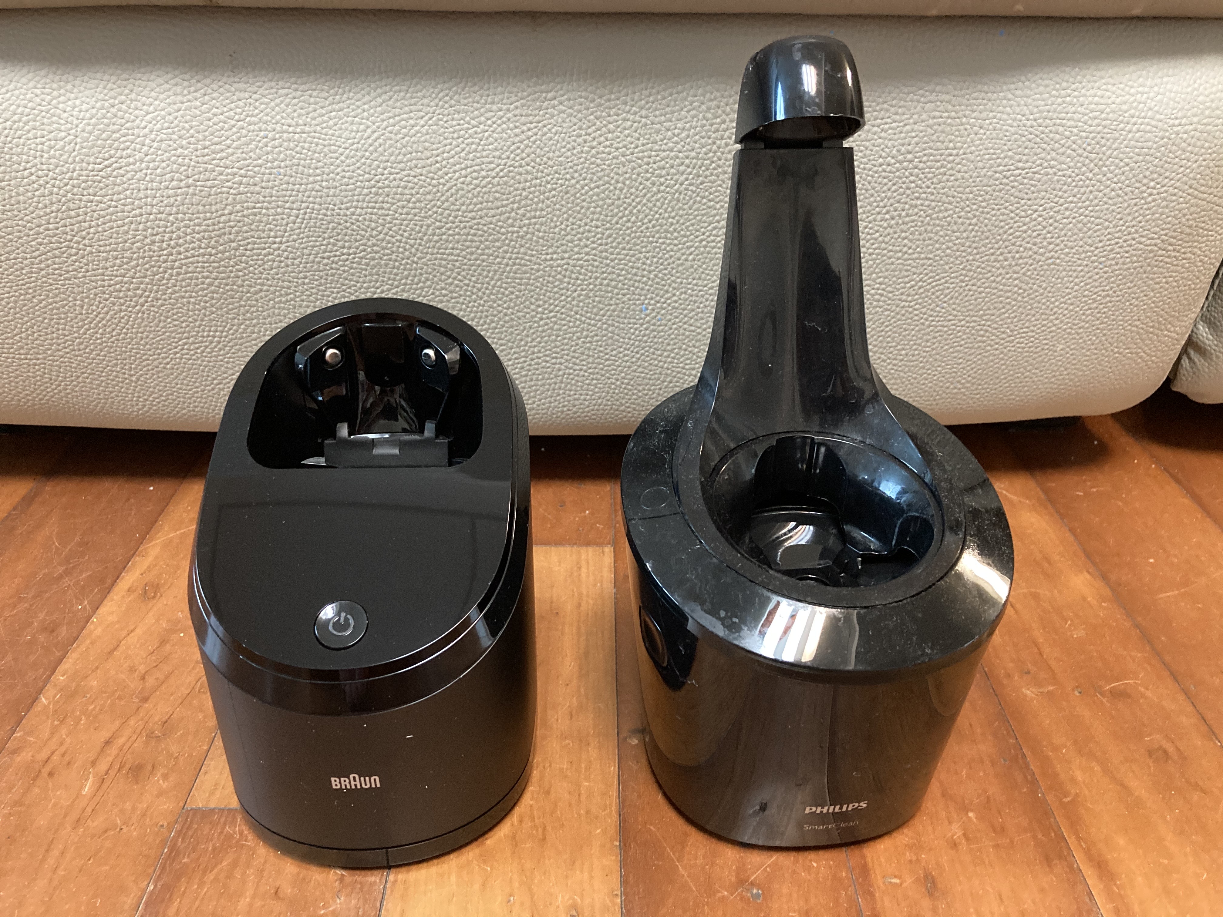 본체와 충전 스테이션을 필립스 9000 시리즈와 비교해 보았습니다.