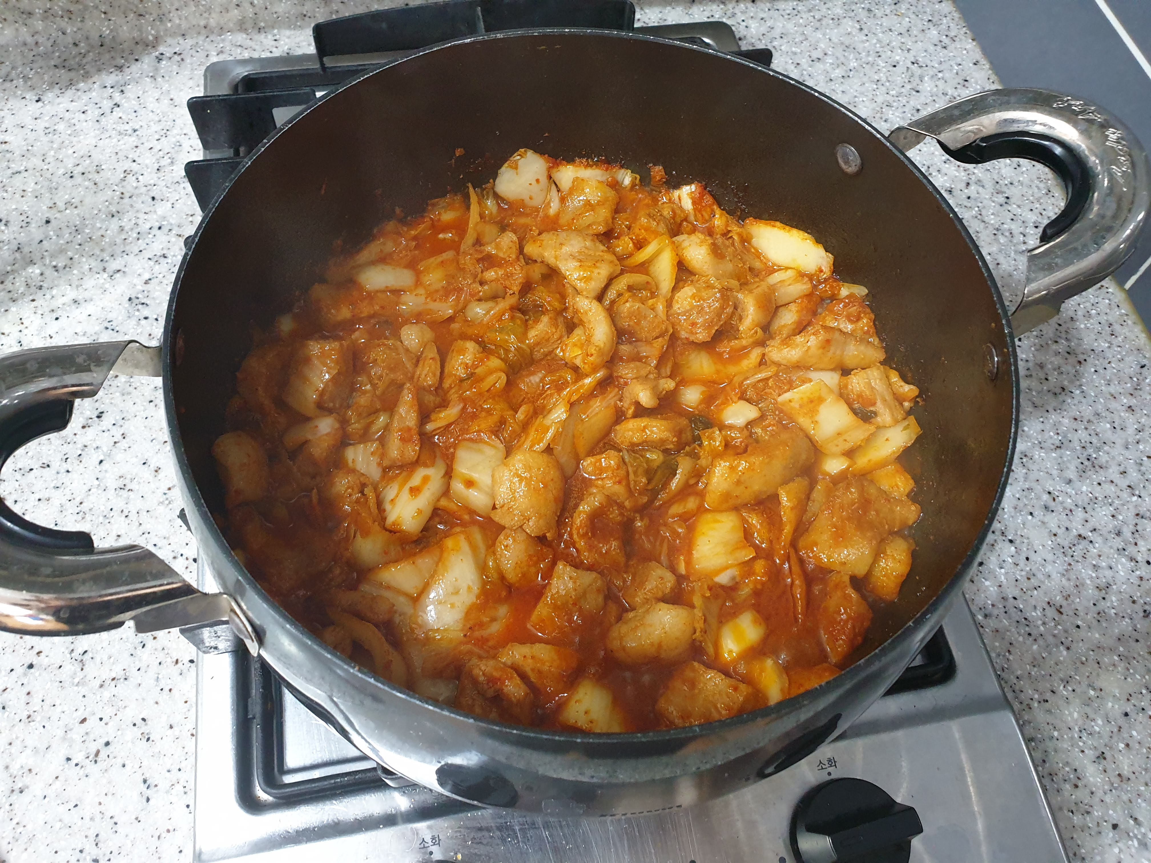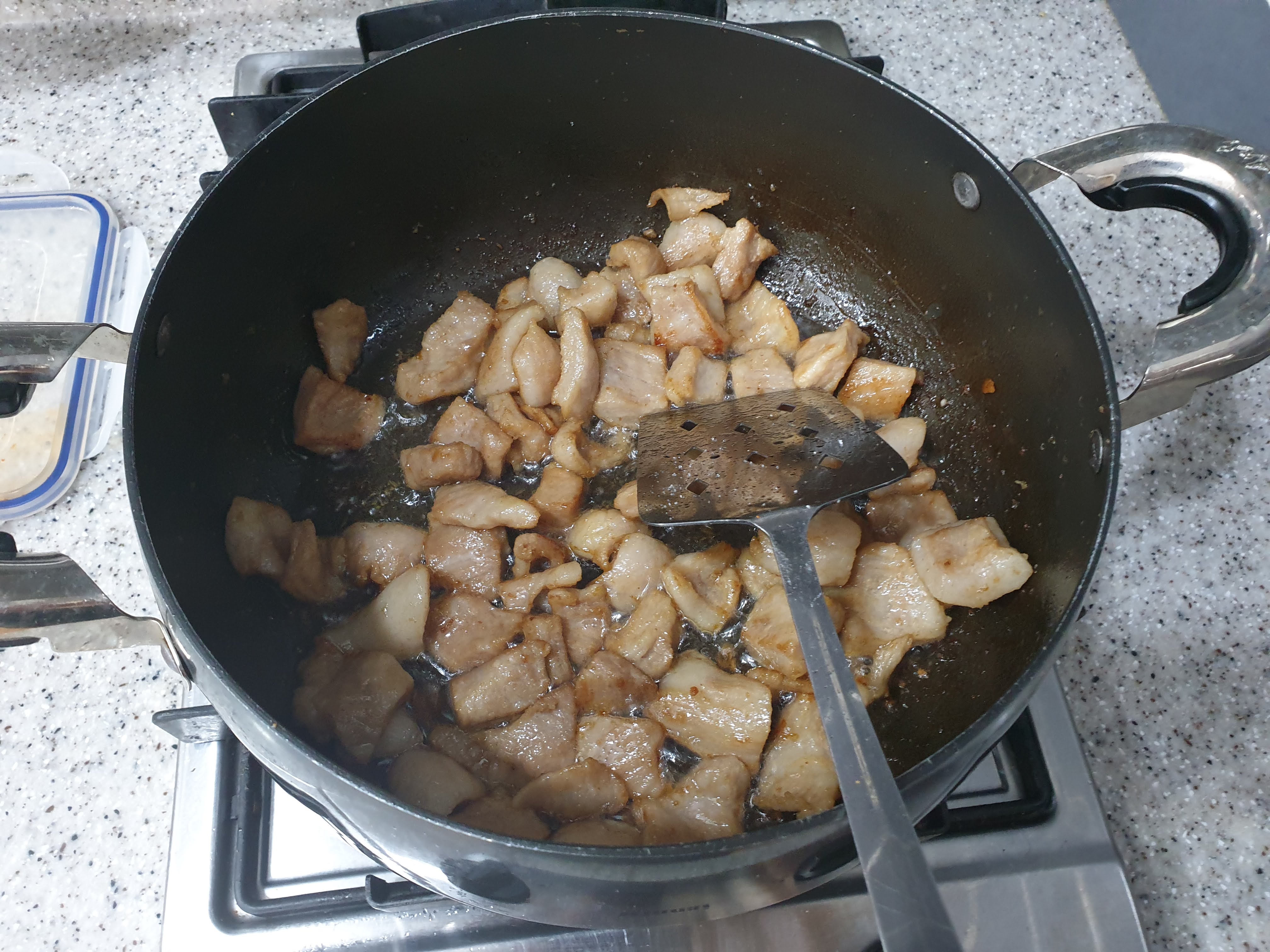 아니면 고기 볶고 기름을 조금 덜어낼걸 그랬습니다.