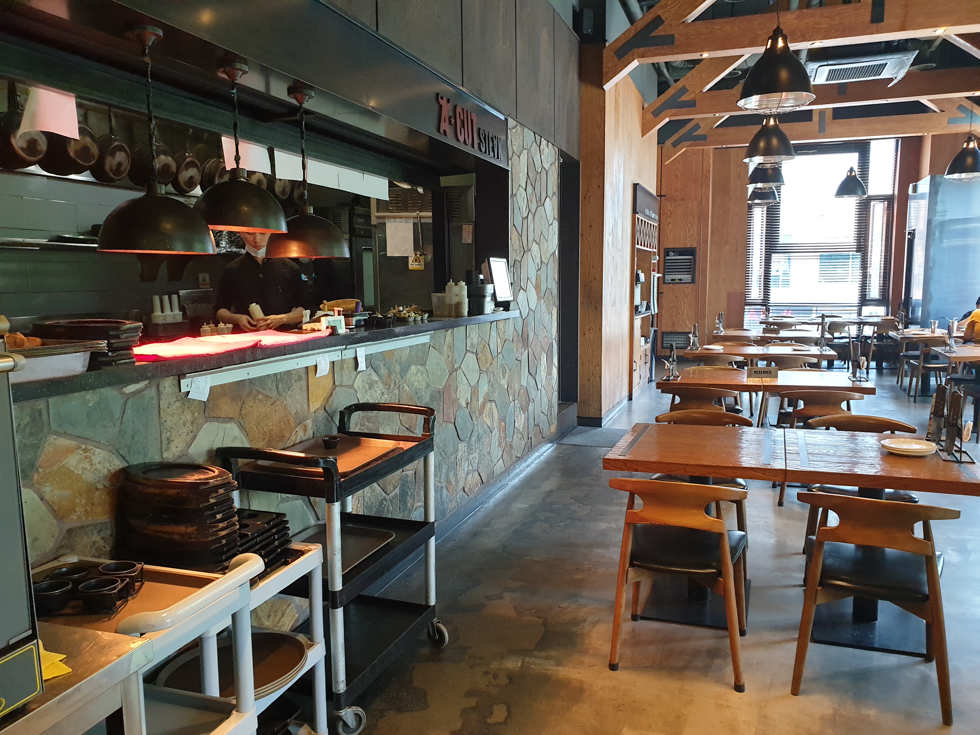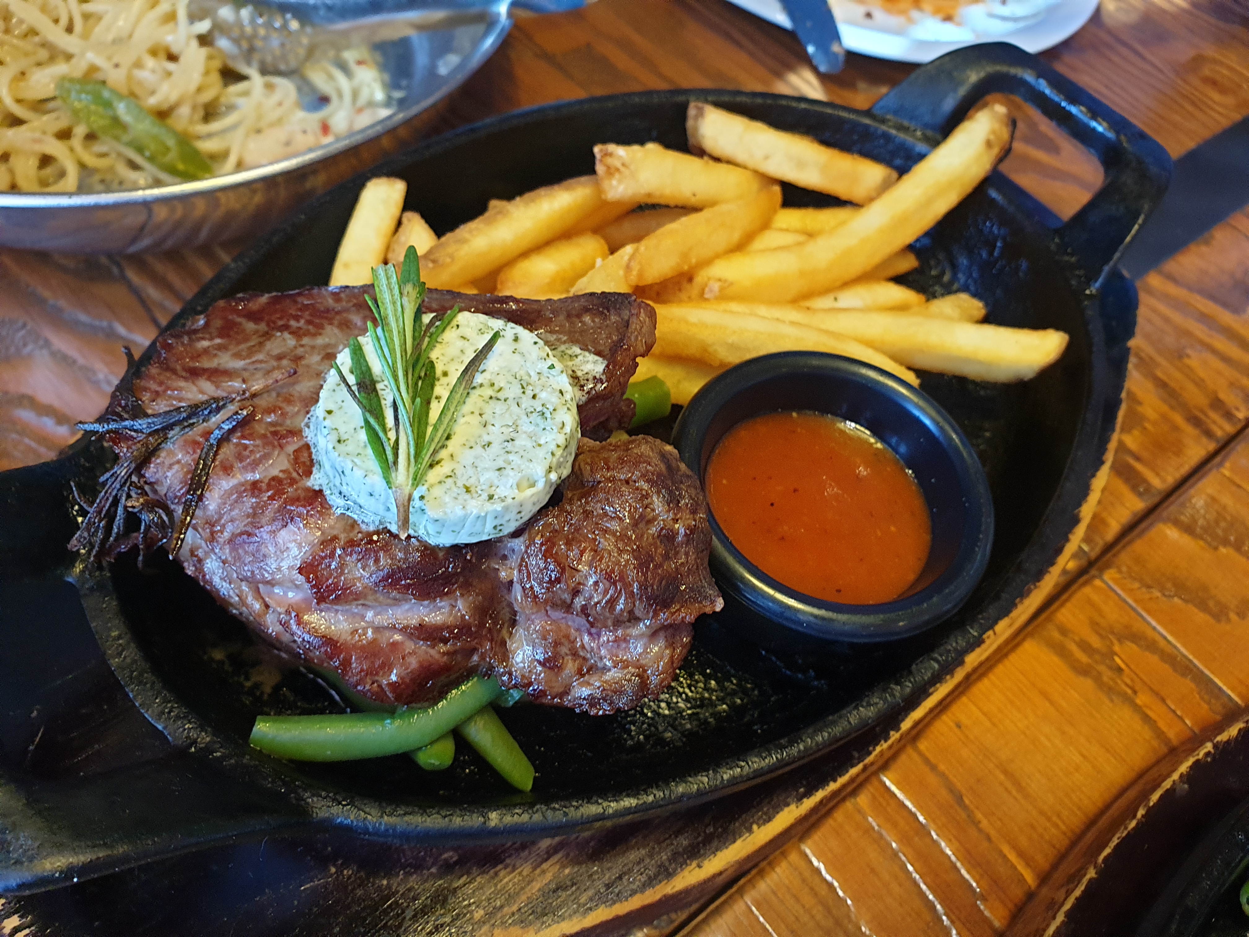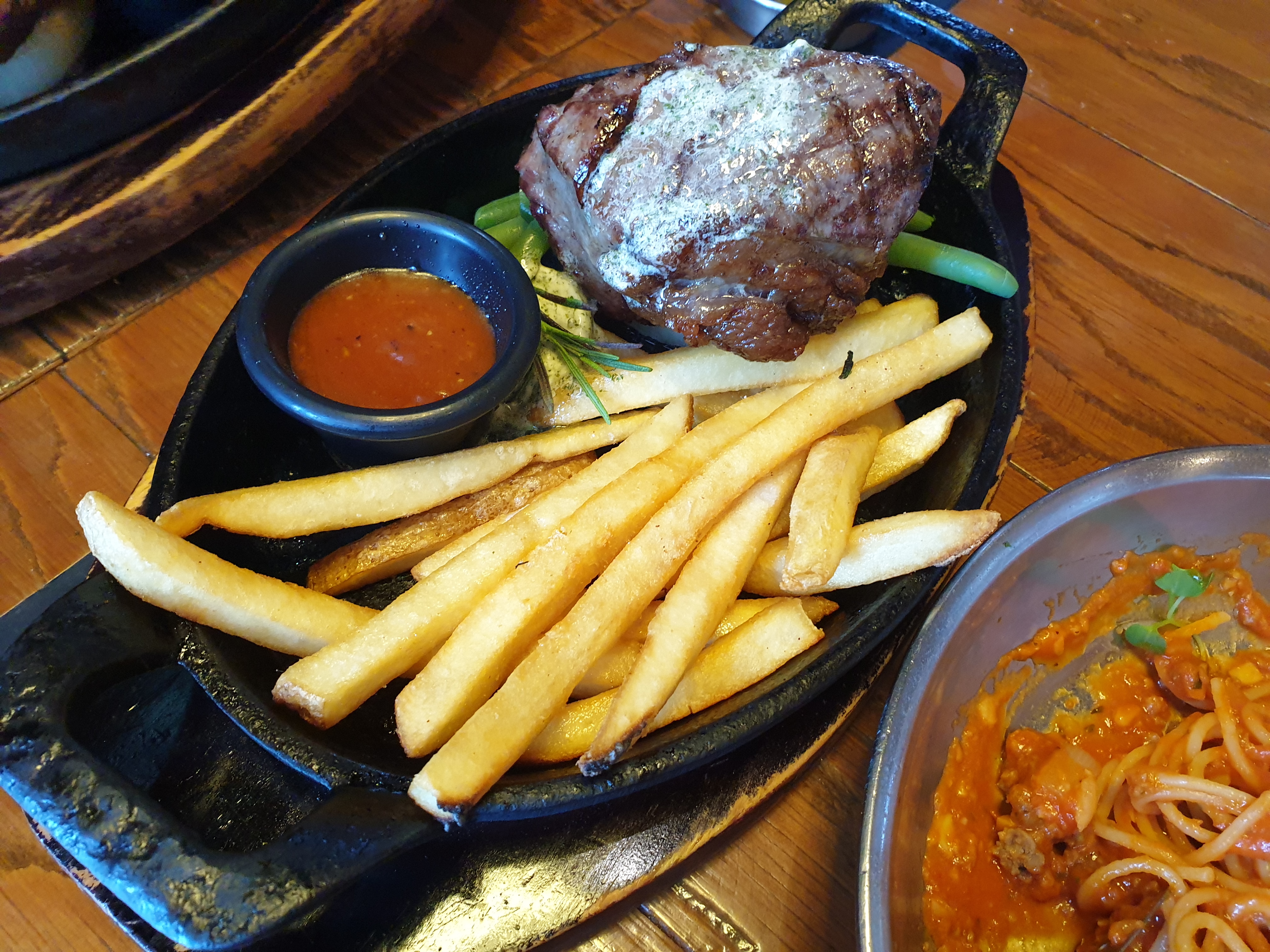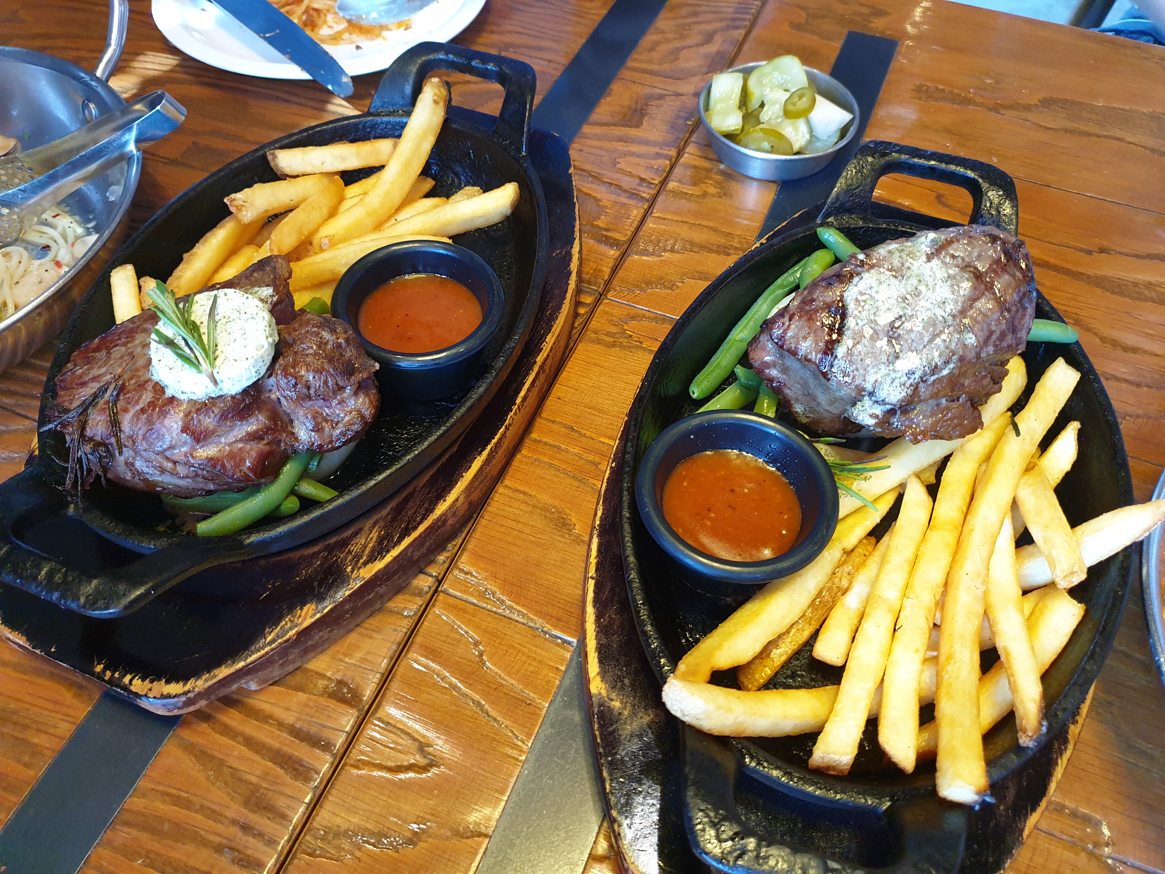 꽤 뜨거운지 미디움으로 주문했던 스테이크가 순식간에 웰던으로 변합니다.