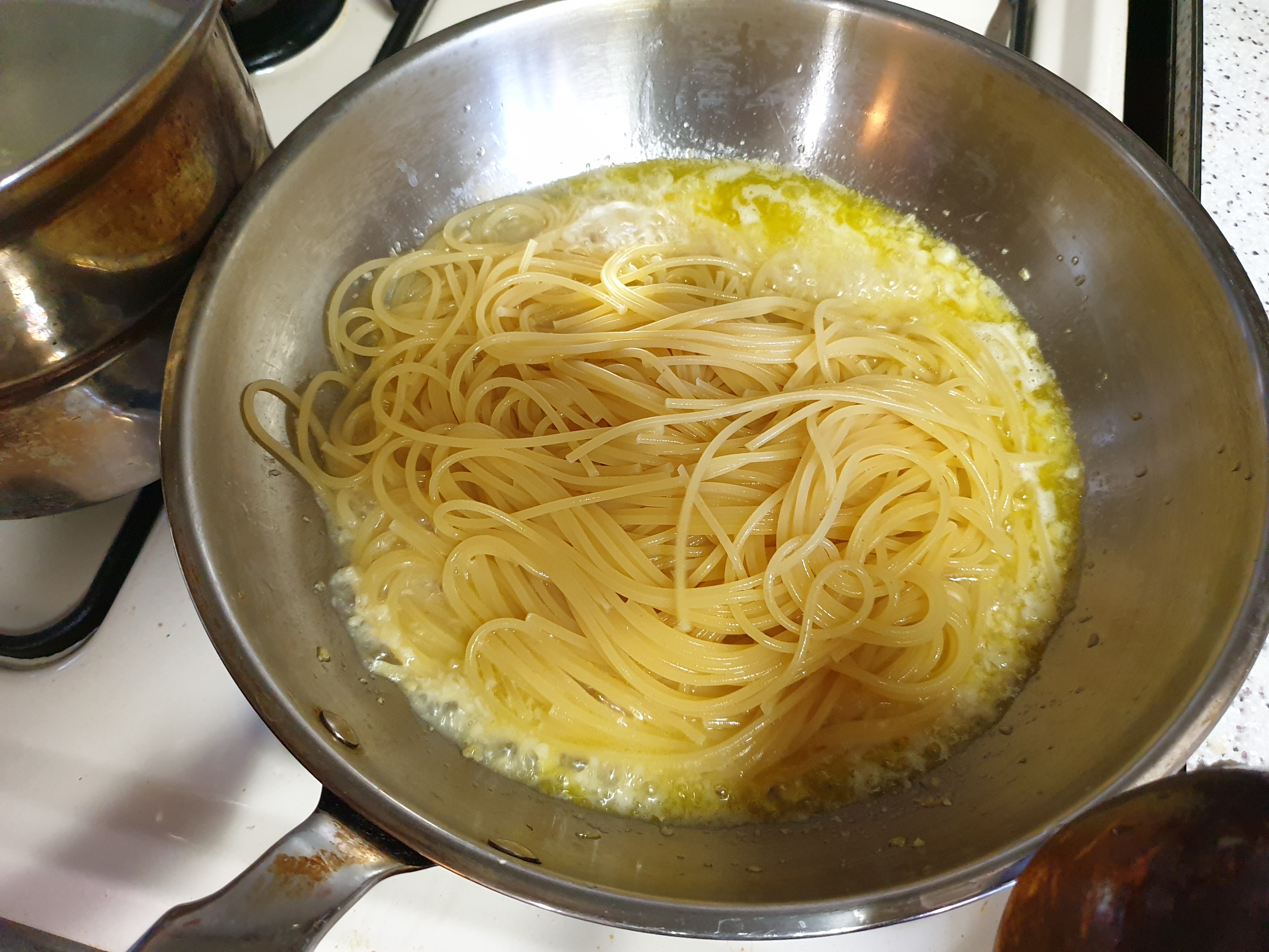 냉동실에 명란이 있어 오일 명란 파스타를 만들어봤습니다.