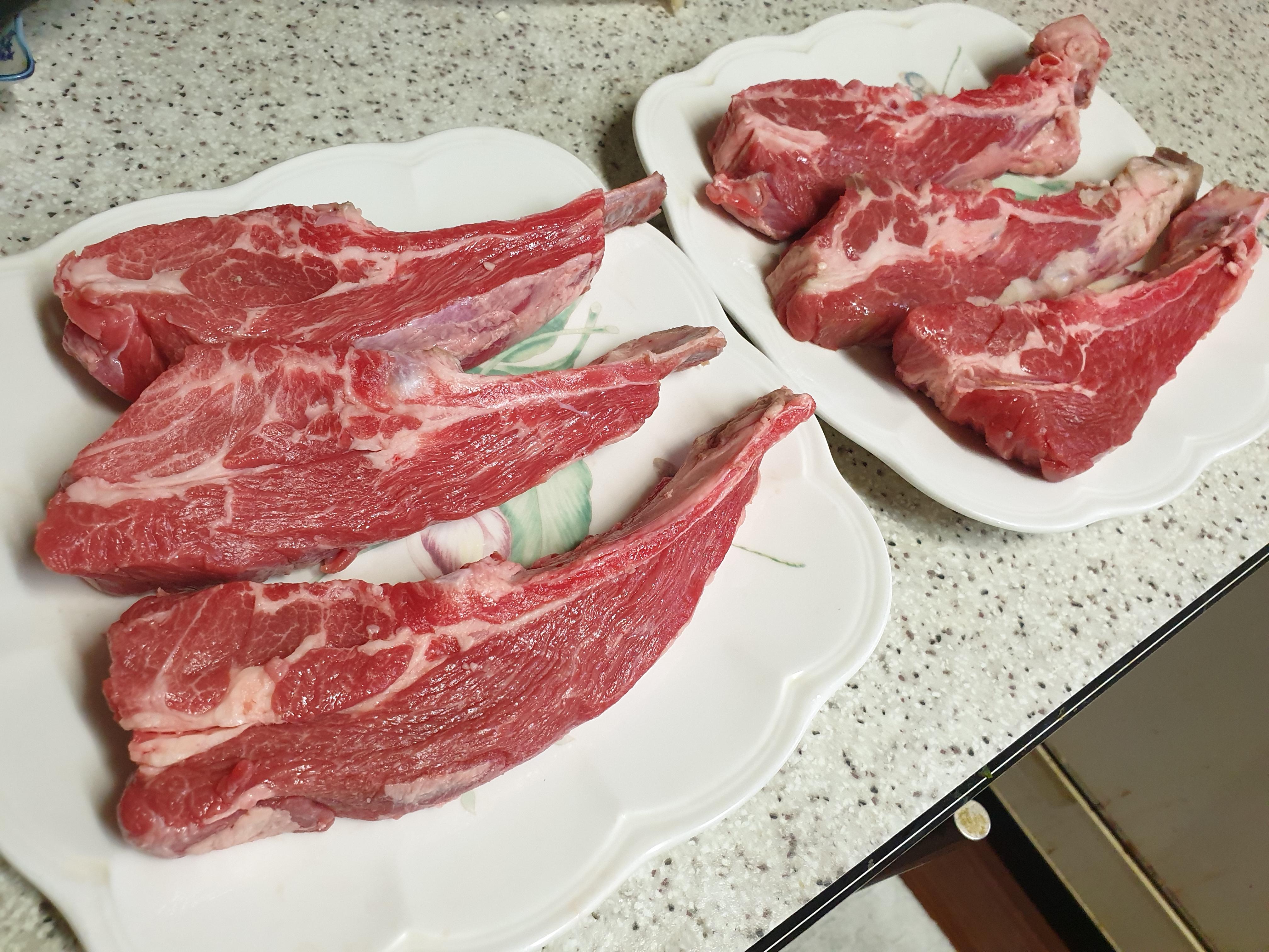 안녕하세요. 같은 단지 사는 친구네 초대를 받아 놀러갔습니다. 좋은 양 갈비가 들어왔다 하여 양 갈비 스테이크를 해먹었습니다. 친구네 주방을 빌려 고기를 구워보았습니다. 친구가 양 갈비 ��