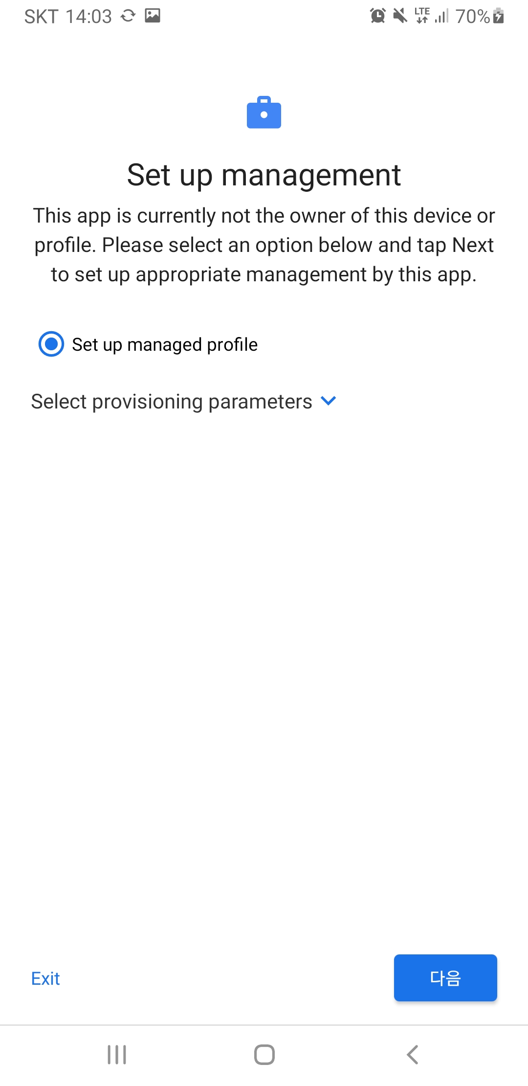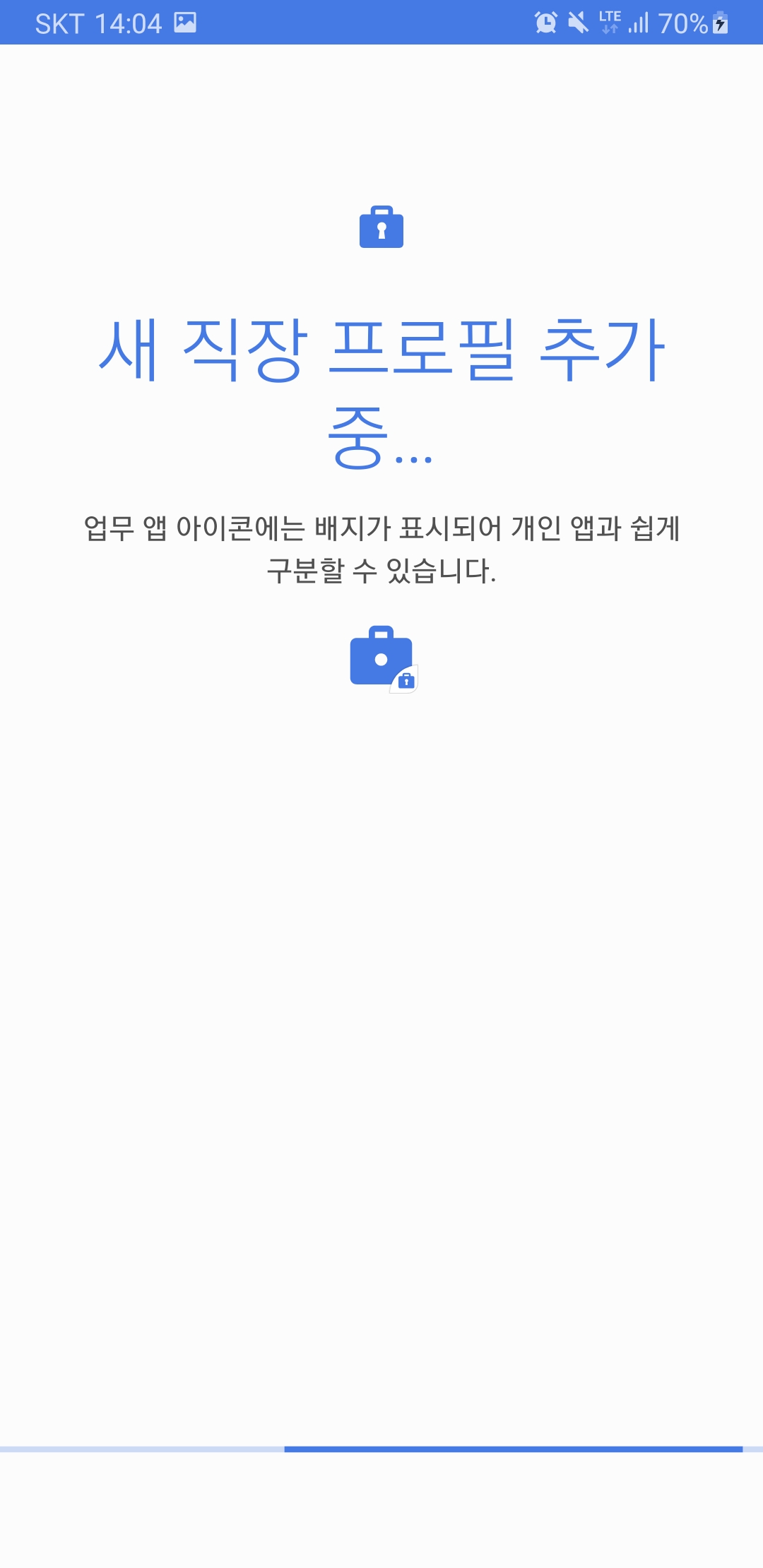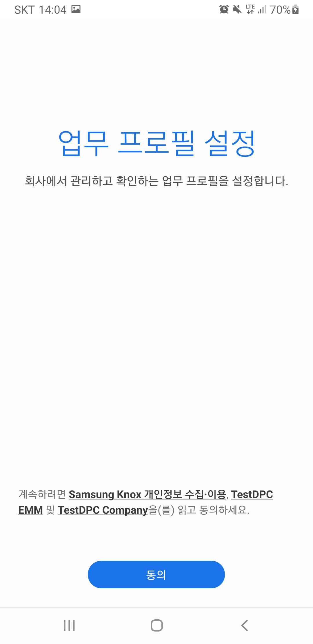 갤럭시 시리즈 (안드로이드) 에서는 Test DPC 란 앱을 통하여 개인 계정 말고도 업무 계정을 따로 사용 가능 합니다.