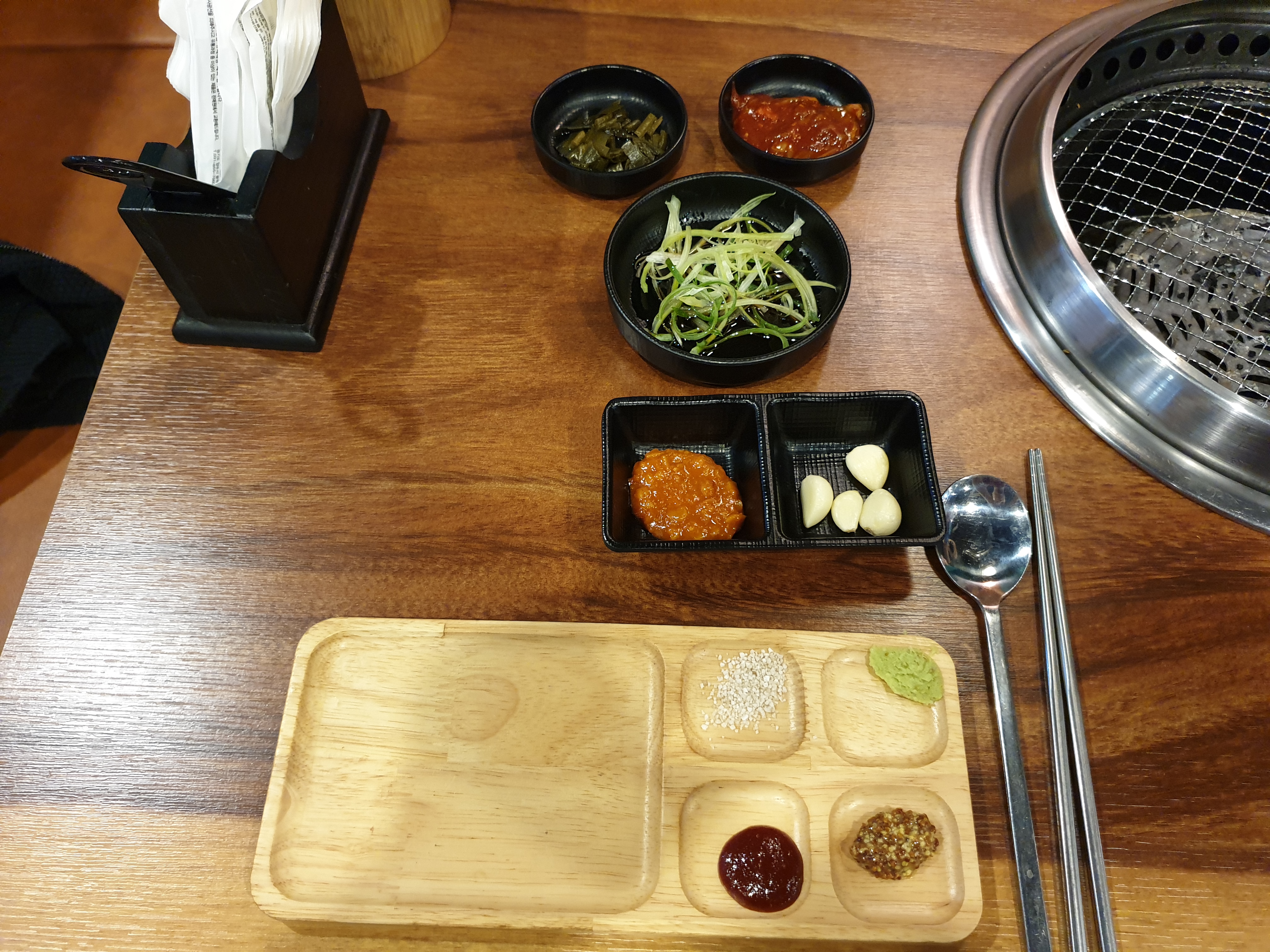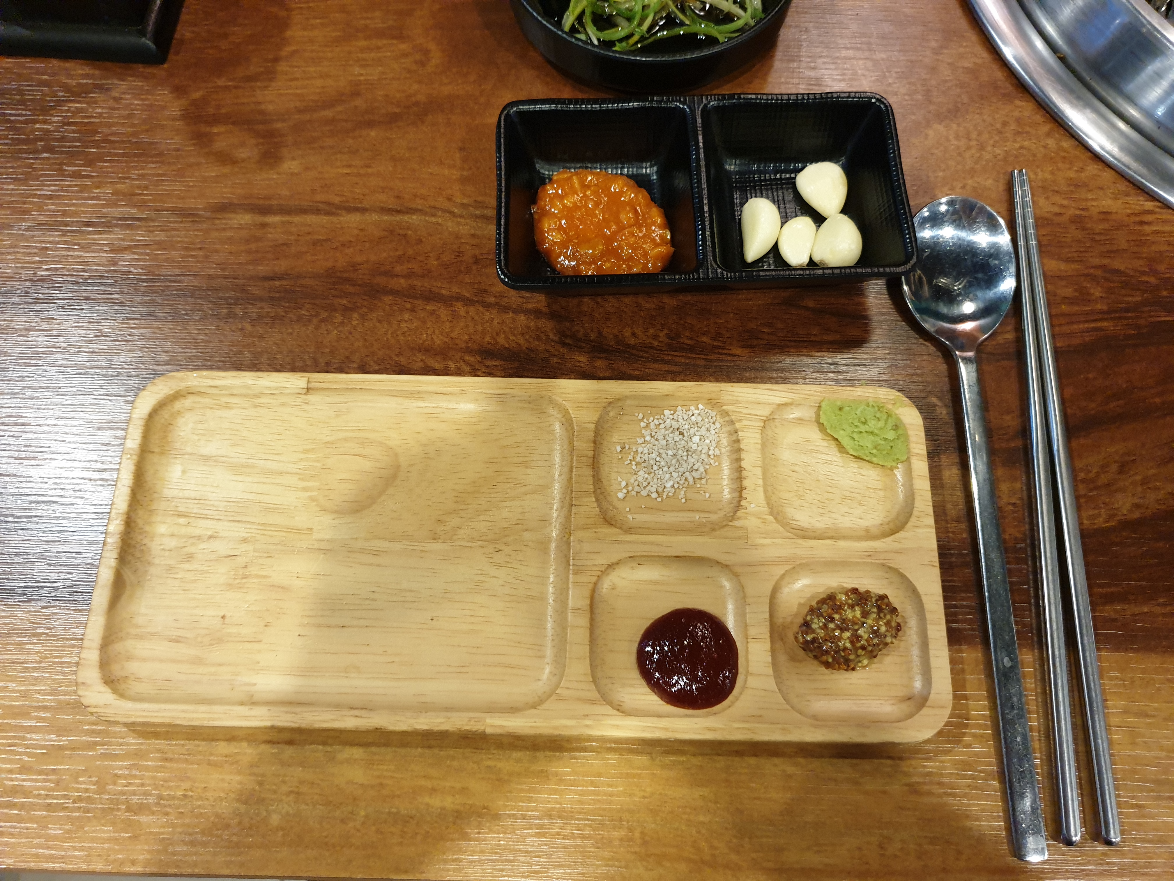 개인 앞접시엔 소금, 생와사비, 초고추장, 씨겨자가 함께 왔었고,