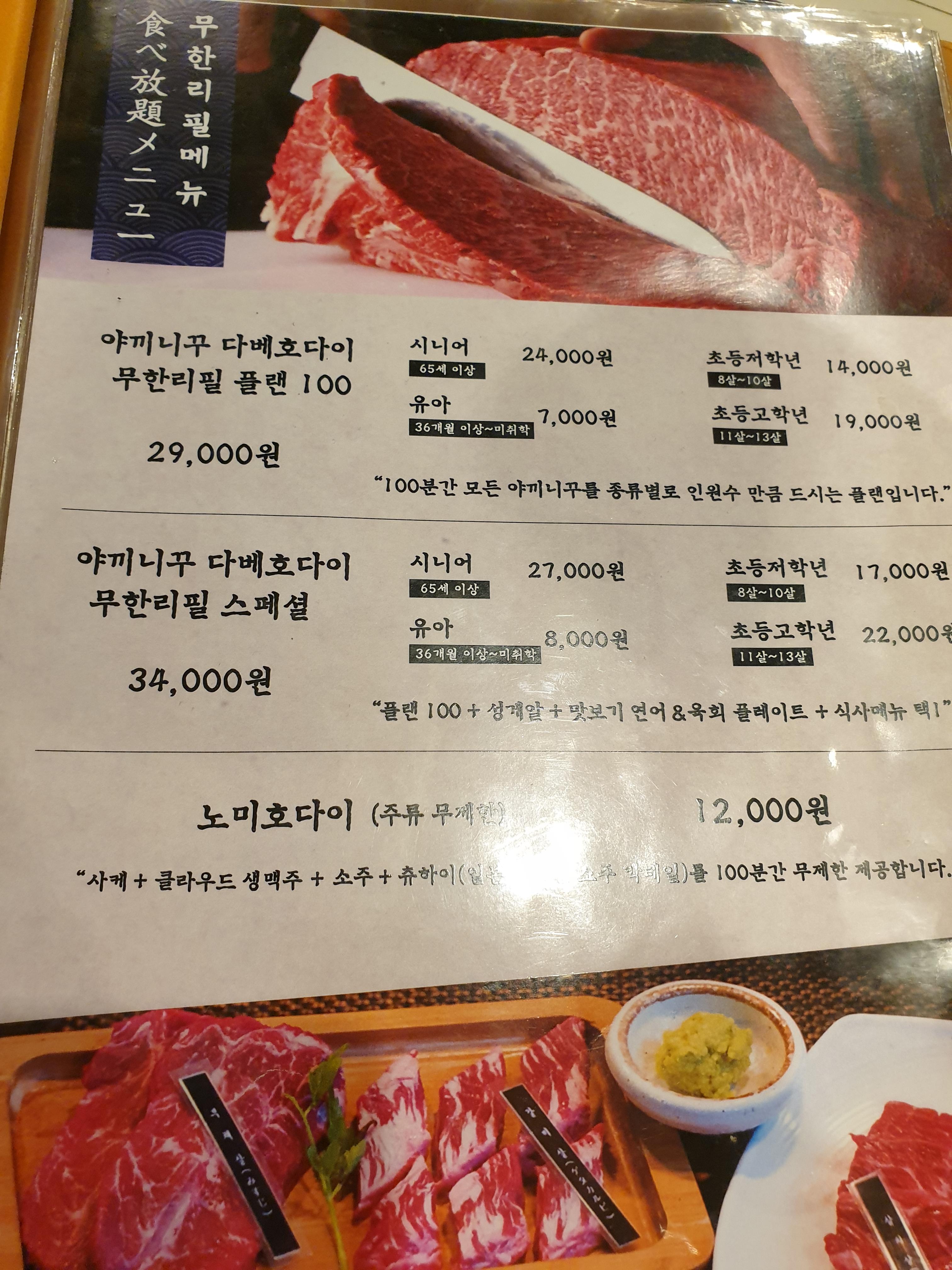 저희는 100분 동안 스페셜 추천을 제외한 소고기 메뉴를 리필 할 수 있는 29000원 짜리 '플랜 100' 으로 주문을 했습니다.