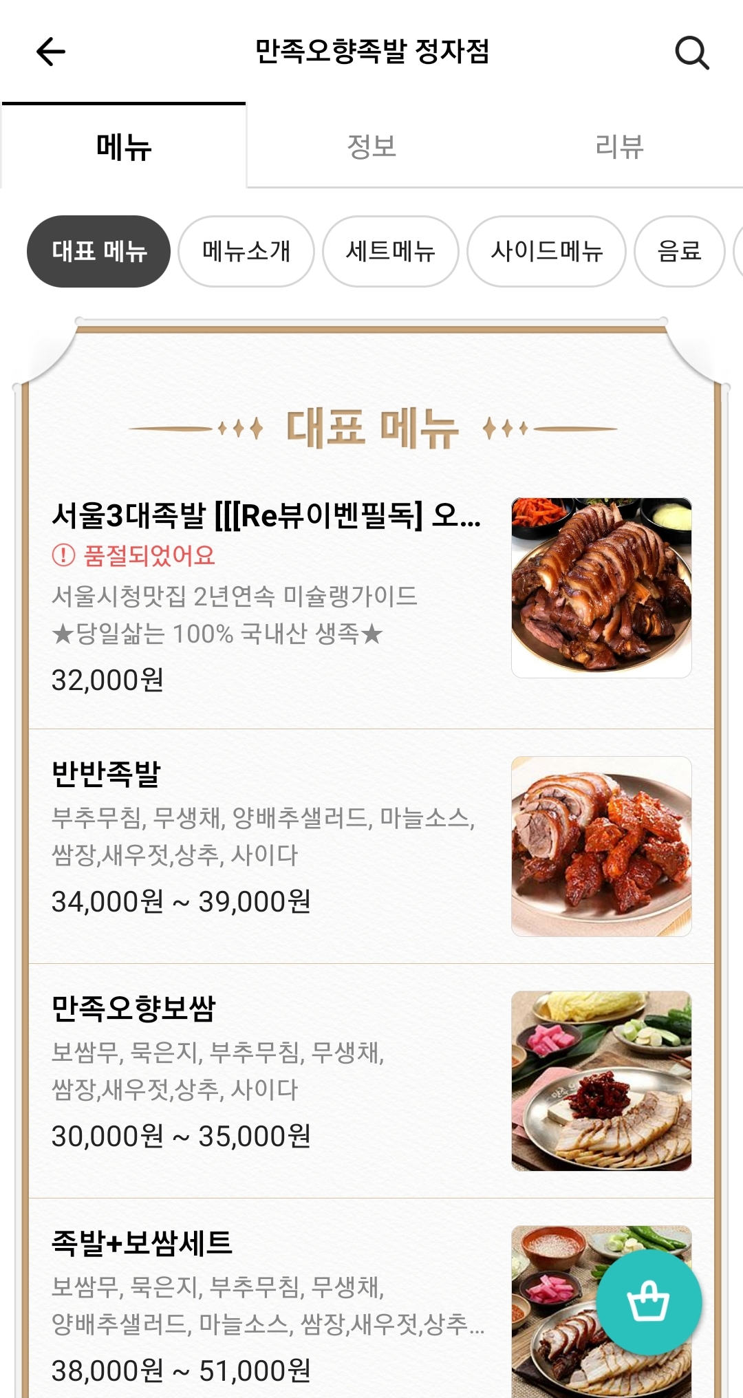 기본 족발을 시키고 싶을땐 여기서 시킵니다.