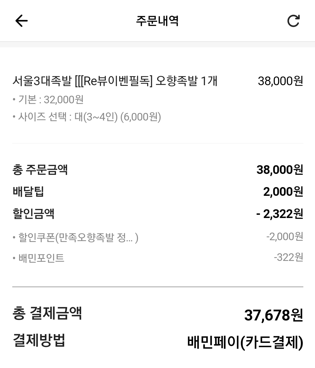 오랫만에 저녁으로 족발을 시켜 먹었습니다. (배민)