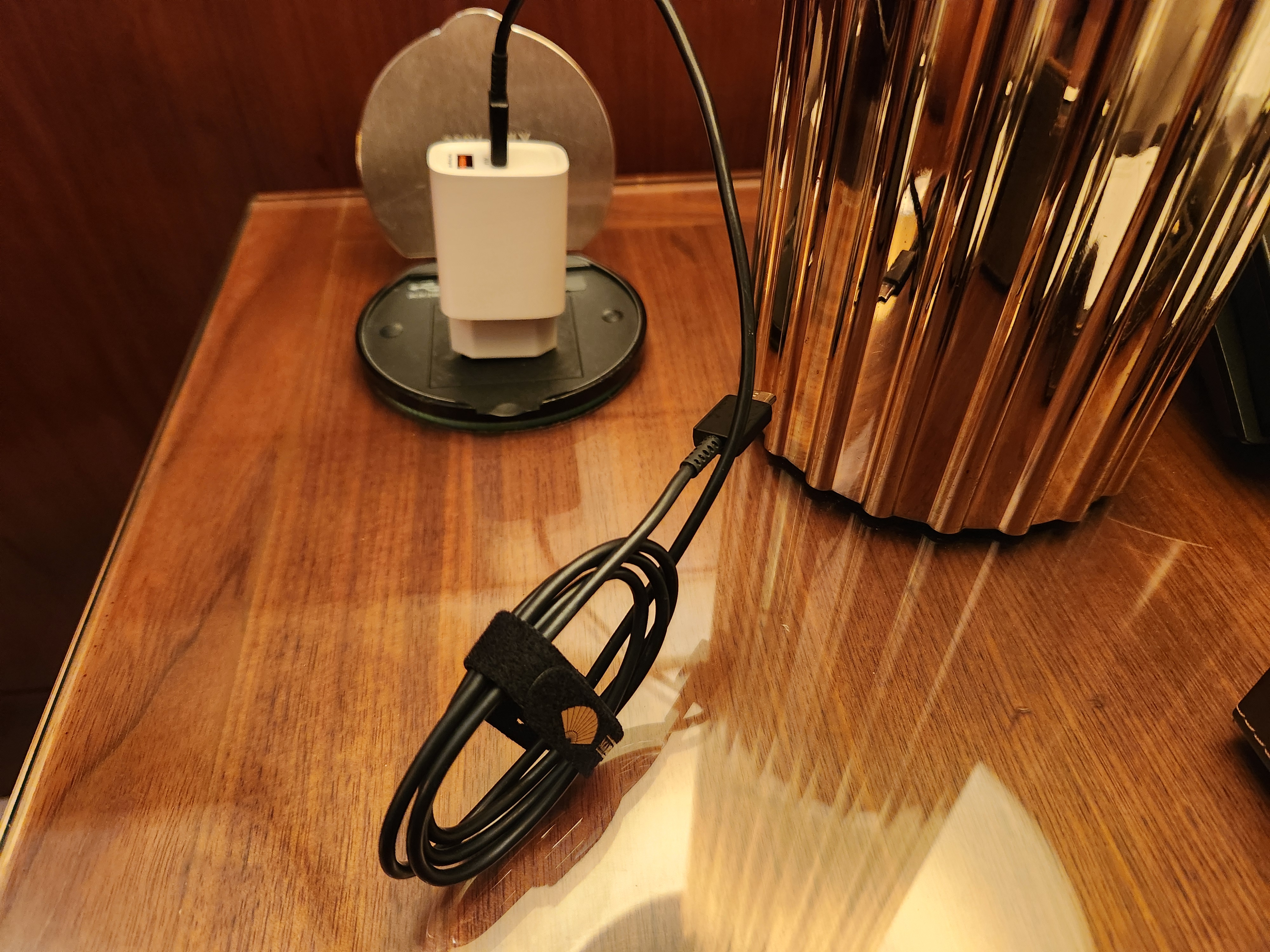 - 충전 케이블은 타이로 깔끔하게 말아서 정리해두고
